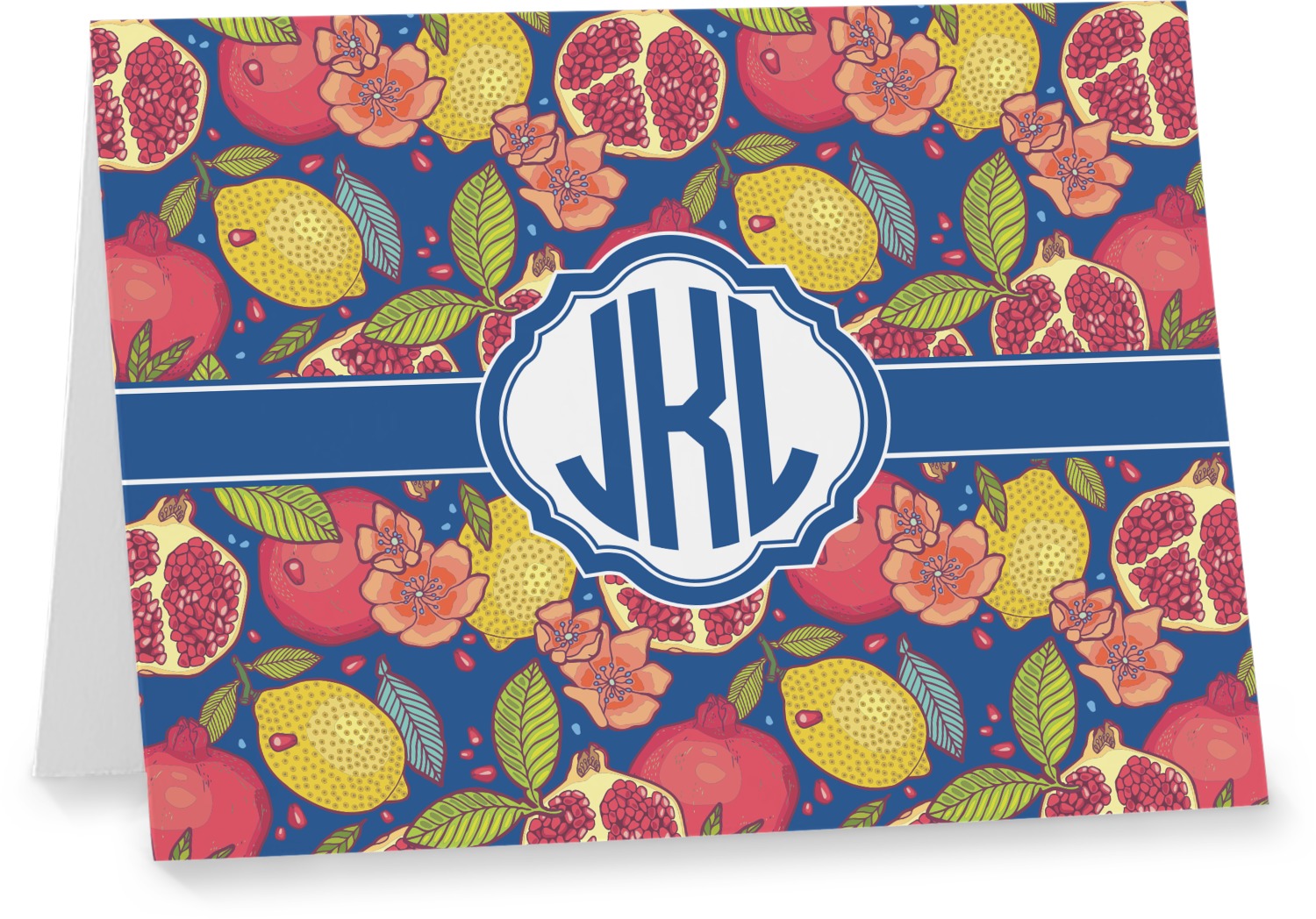 This beautiful Pomegranate & Lemon design is part of our fruits and vegetables collection. This design features the tasty fruits in multiple colors and sizes, surrounded by leaves and seeds on a dark blue background (however, you have the option of selecting any color!)