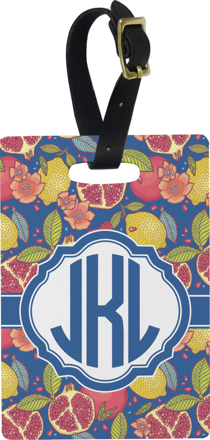 These personalized bag tags are sold in a variety of shapes, so that you may find the product that meets your vision exactly. We sell a round luggage tag, which measures at approximately 4" x 4". Our square luggage tag is about 3.5" x 3.5", while our rectangular version is 2.75" x 4 ".