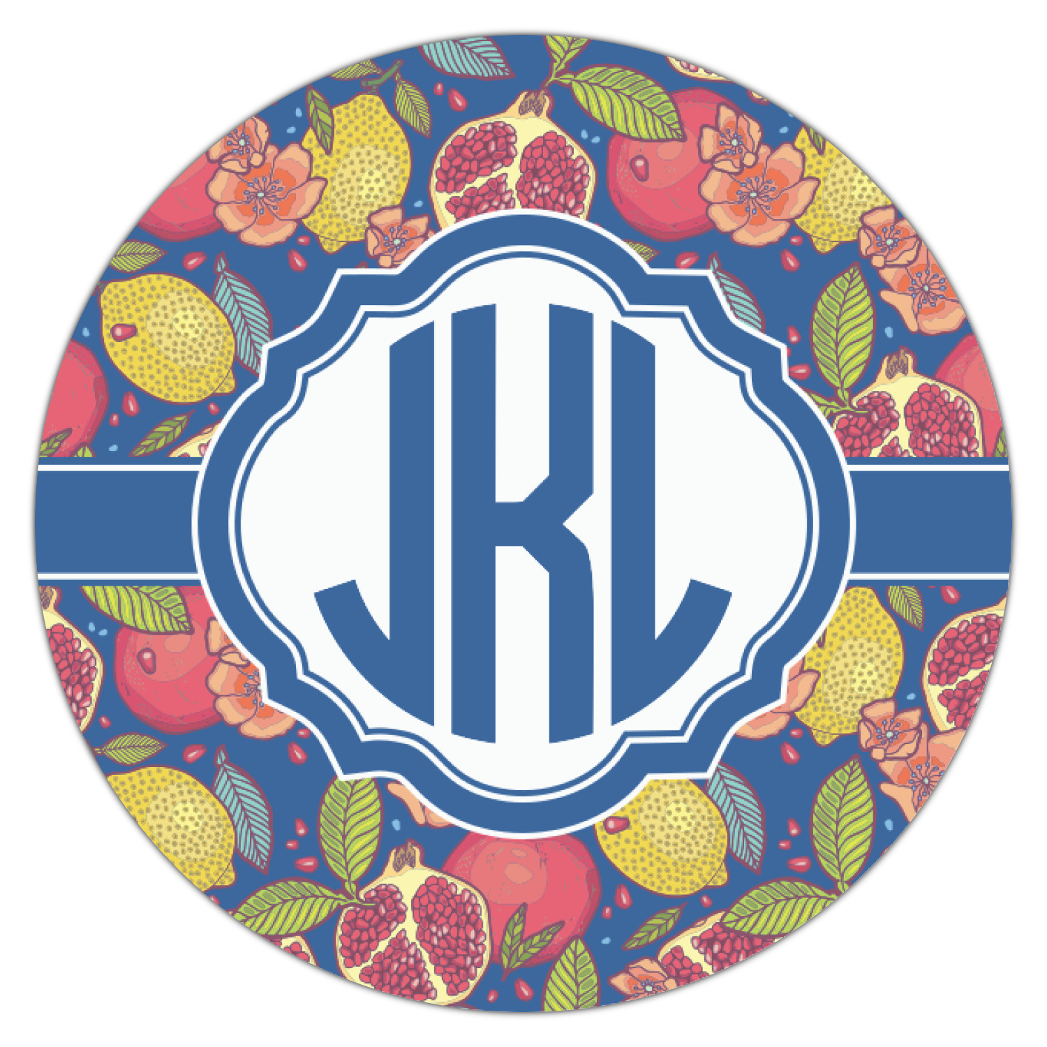 This beautiful Pomegranate & Lemon design is part of our fruits and vegetables collection. This design features the tasty fruits in multiple colors and sizes, surrounded by leaves and seeds on a dark blue background (however, you have the option of selecting any color!)