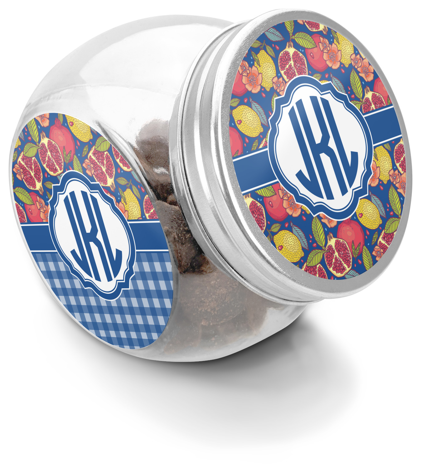 This treat jar is an excellent way to store treats for your favorite canine or feline. Moreover, their delicate, classy appearance makes them a tasteful addition to your countertop's décor. Crafted from clear glass, its unique construction and silver metal, screw-on lid allows for quick and easy access. Three, permanent, vinyl stickers are applied to both sides of the jar and lid, presenting your personalized design. The base of this glass, dog treat jar is 3.4" x 4.75", and the jar stands at 5" tall. Though on the smaller side, this jar is best suited for smaller treats or training treats.