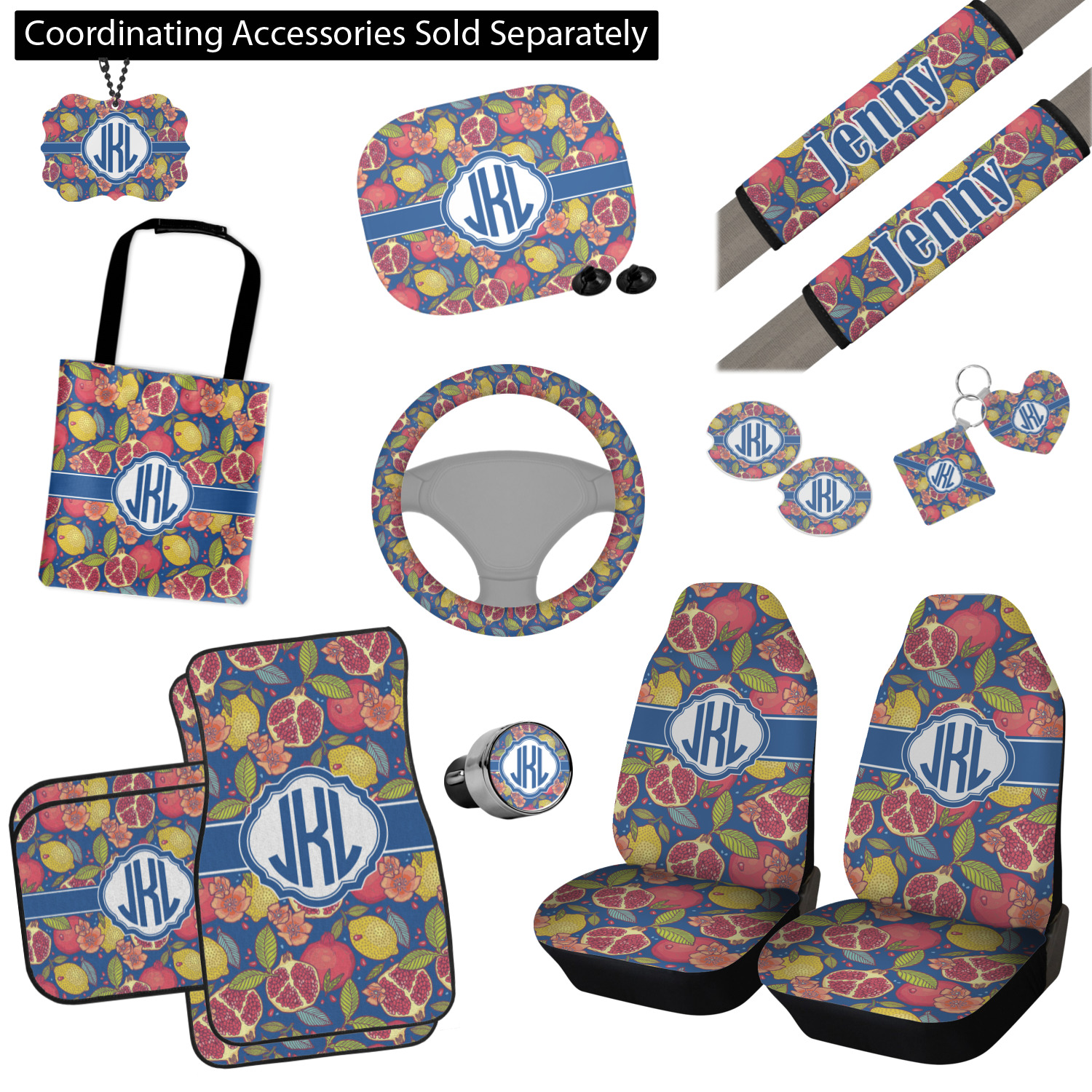 This beautiful Pomegranate & Lemon design is part of our fruits and vegetables collection. This design features the tasty fruits in multiple colors and sizes, surrounded by leaves and seeds on a dark blue background (however, you have the option of selecting any color!)