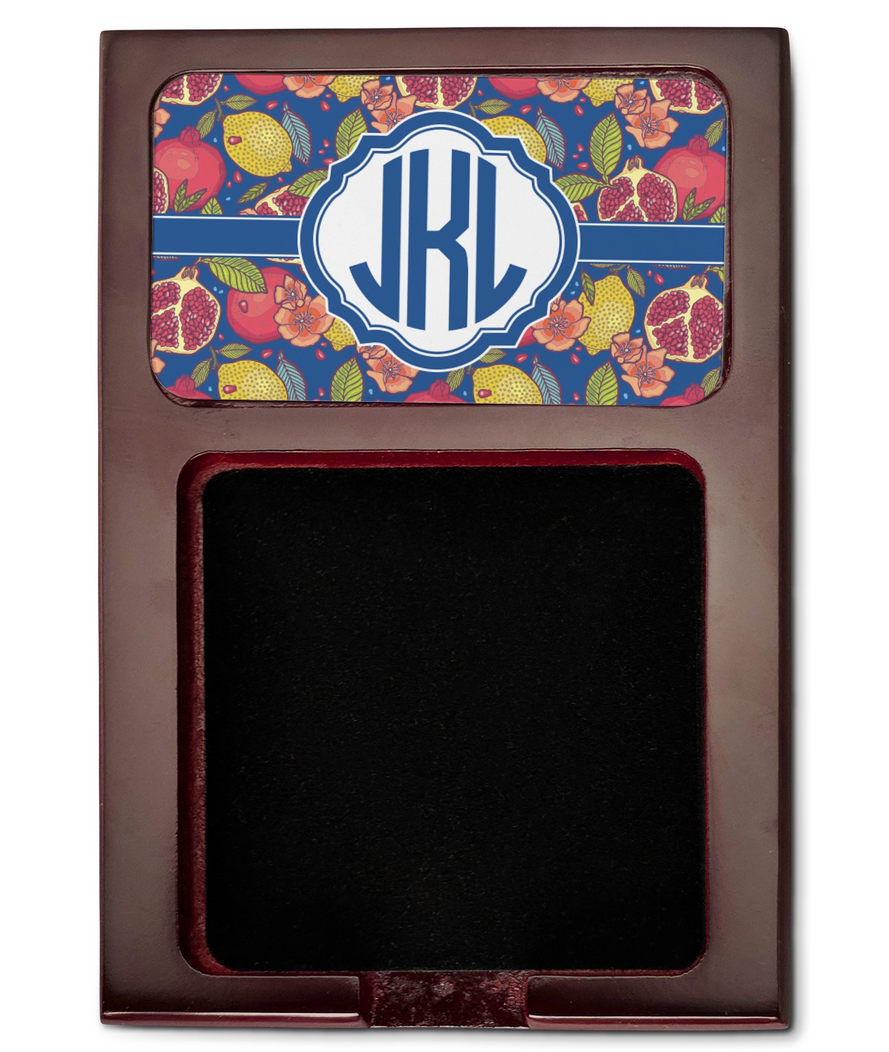 Crafted from a fine mahogany, this post it note holder is in the shade of a dark, cherry color. The dispenser itself is about 4.25 by 6.25 by 0.75 inches. You can place your 3 by 3 inch sticky notes in the indentation below the nameplate. We print your customization onto the nameplate that rests above the velvety indentation.