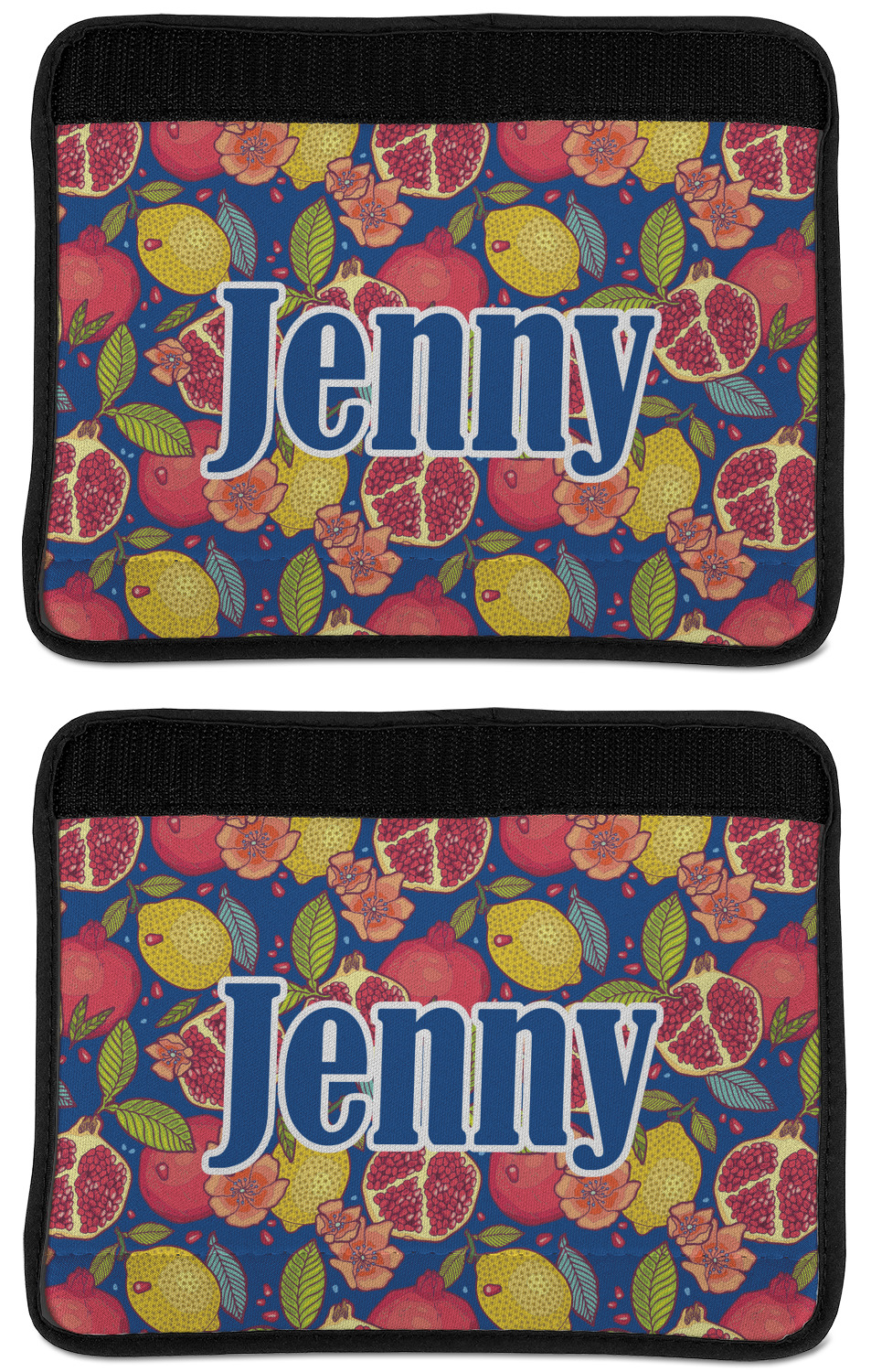 Made from neoprene, our seat belt strap covers wrap around the belt itself and have a Velcro tab for easy attachment and closure. The belt's edges are trimmed with a black polyester for a secure finish. Each cover is 9.5 by 7 inches when open and 9.5 by 2.5 inches when closed. We print your personalized design on the face of the seat belt pad.