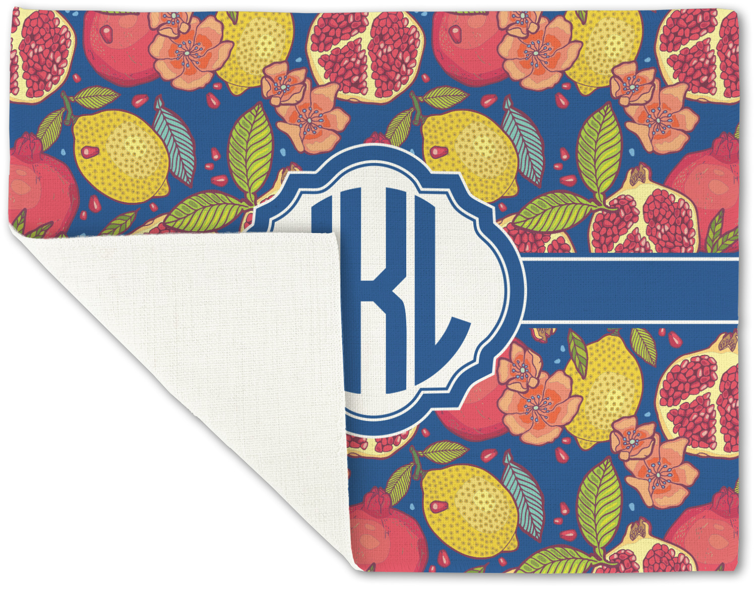This beautiful Pomegranate & Lemon design is part of our fruits and vegetables collection. This design features the tasty fruits in multiple colors and sizes, surrounded by leaves and seeds on a dark blue background (however, you have the option of selecting any color!)