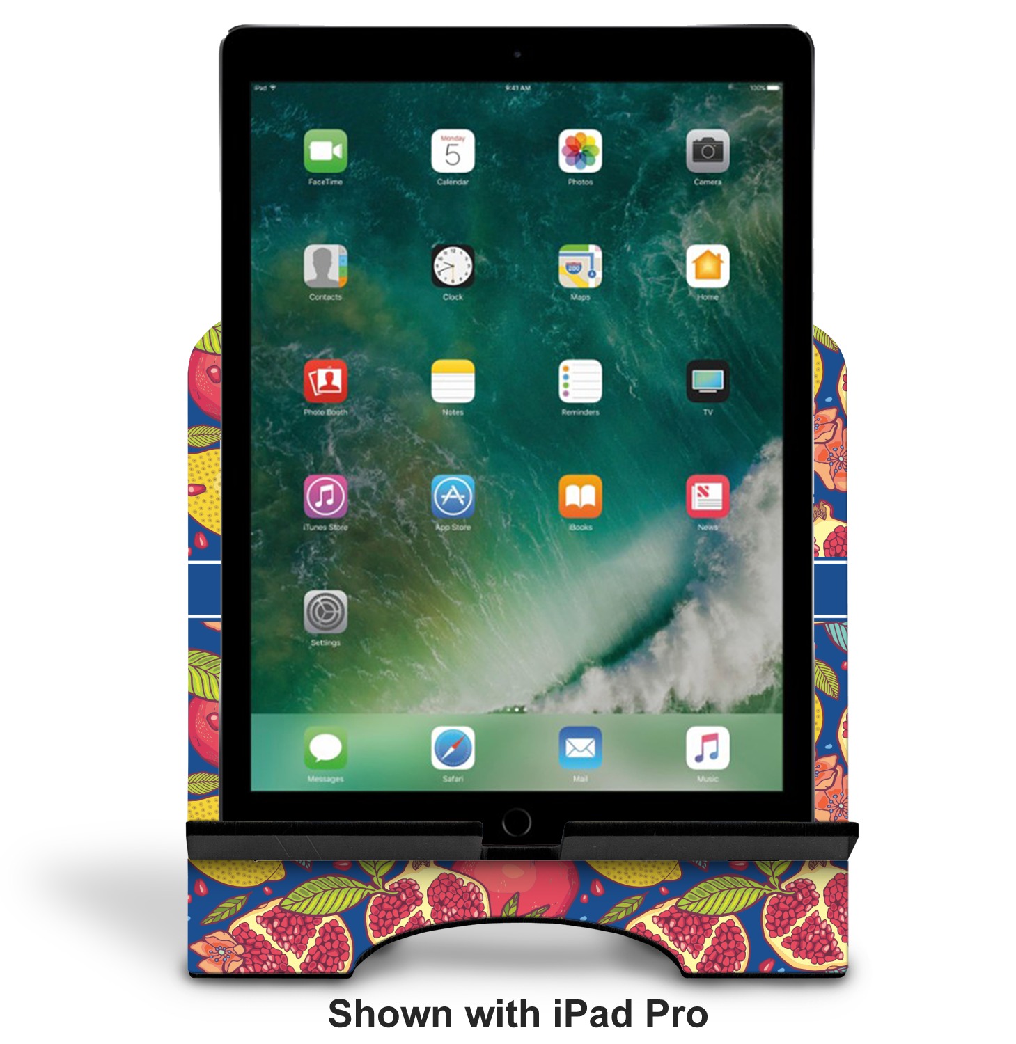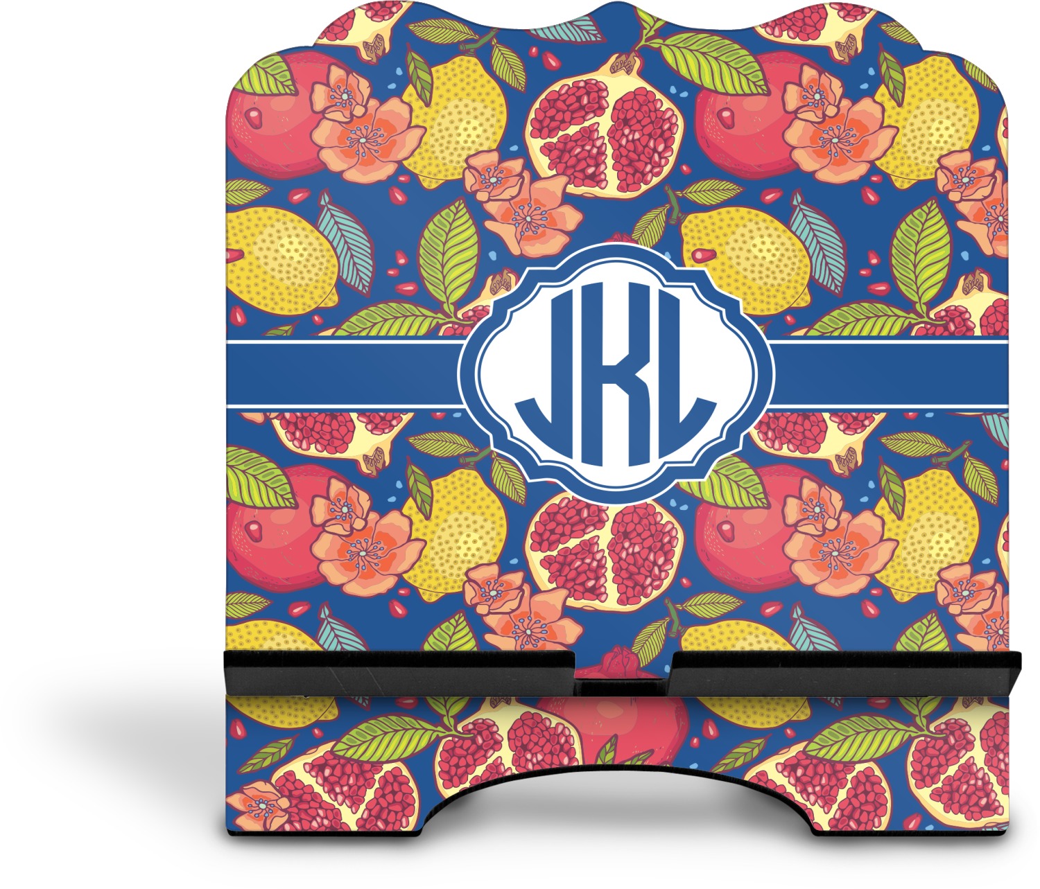 The stand is comprised of two hardboard pieces that fit snugly together and stabilize one another. The bottom part of the iPad stand supports your tablet, and has space for your tablets charger while in use. At 9.25" x 11.5", this tablet mount can support a device between the sizes of the iPad Pro and the iPad Mini 2. The uppermost part of the stand features a decorative, curved edge for a classy, suave appearance. We print your customization atop the face of the stand, in vibrant color. The remaining sides are colored a sleek black.