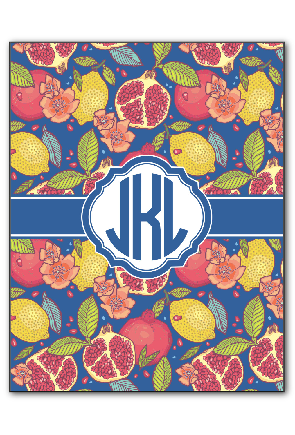 This beautiful Pomegranate & Lemon design is part of our fruits and vegetables collection. This design features the tasty fruits in multiple colors and sizes, surrounded by leaves and seeds on a dark blue background (however, you have the option of selecting any color!)