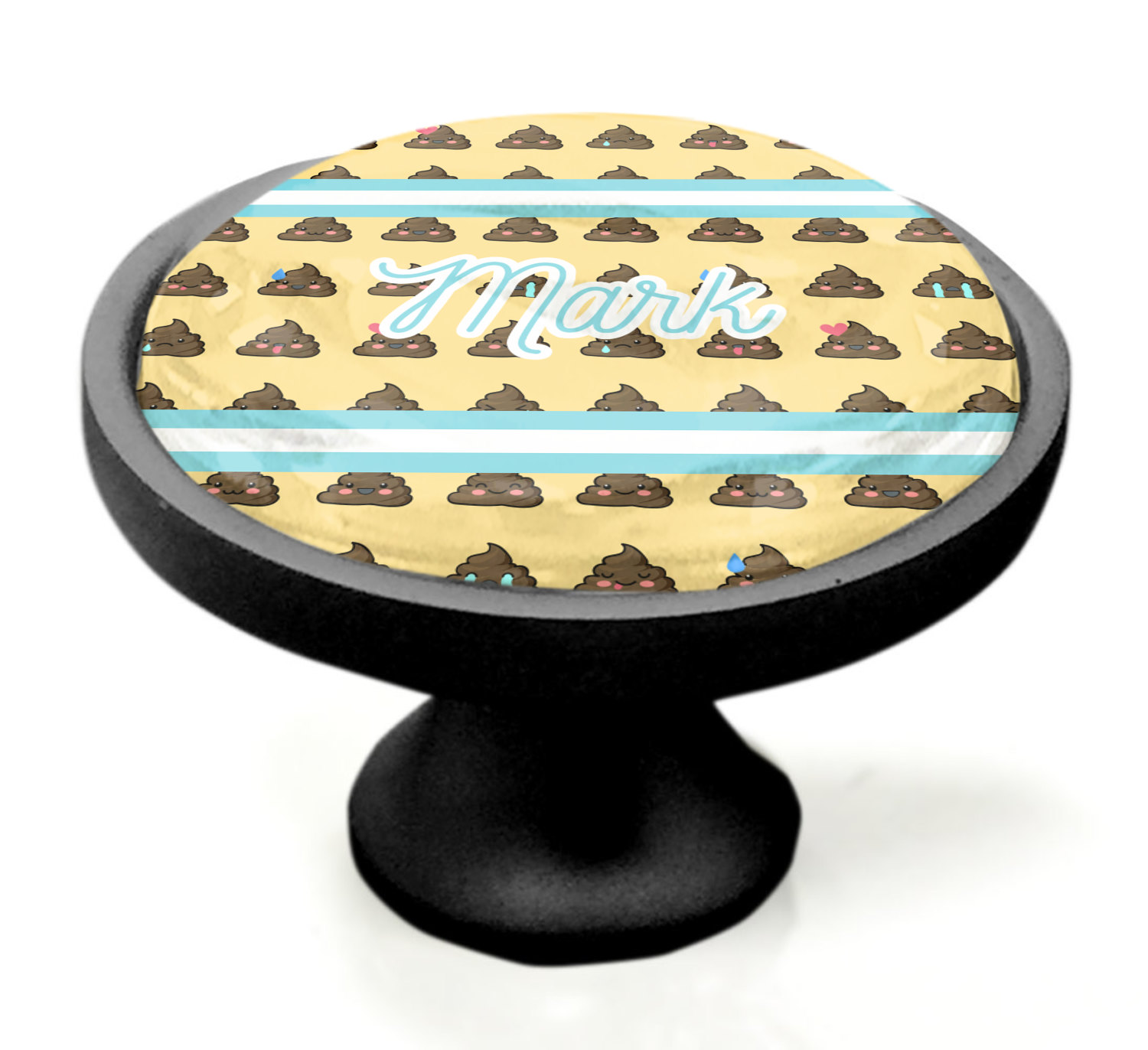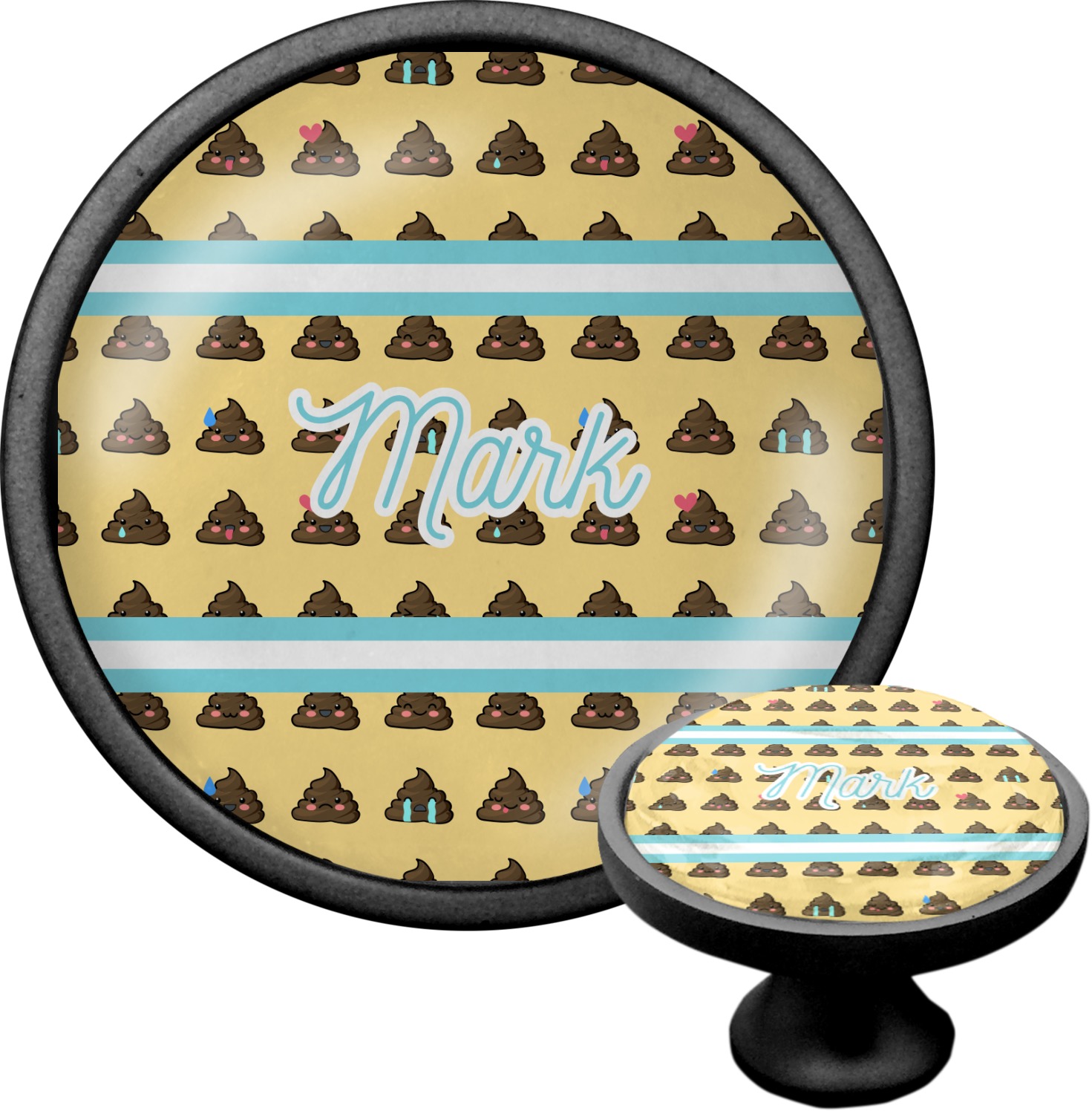 We sell these cabinet pulls in two different colors to better match your room's color scheme. We offer an oil-rubbed bronze base that is black in color, and a satin nickel option, which has a silver color. Your design is displayed across a high gloss vinyl insert that is placed on top of these cabinet handles. We then place a 1 inch thick glass cabochon atop the design, which seals the cabinet knob and makes the colors of your customization stand out. These custom cabinet knobs are approximately 1.3 inches in diameter. Your purchase includes a 1 inch screw that can be used to mount the knob to any cabinet in your home.