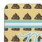 The design is a fun bright yellow with brown poop emojis all over. Each emoji is making a different face! Two light teal / turquoise ribbons are use to frame your personalization in the middle of the design. The coordinating design has a fun speckled yellow background with a large poop emoji right in the middle, saying "Oh, Poo!" underneath.