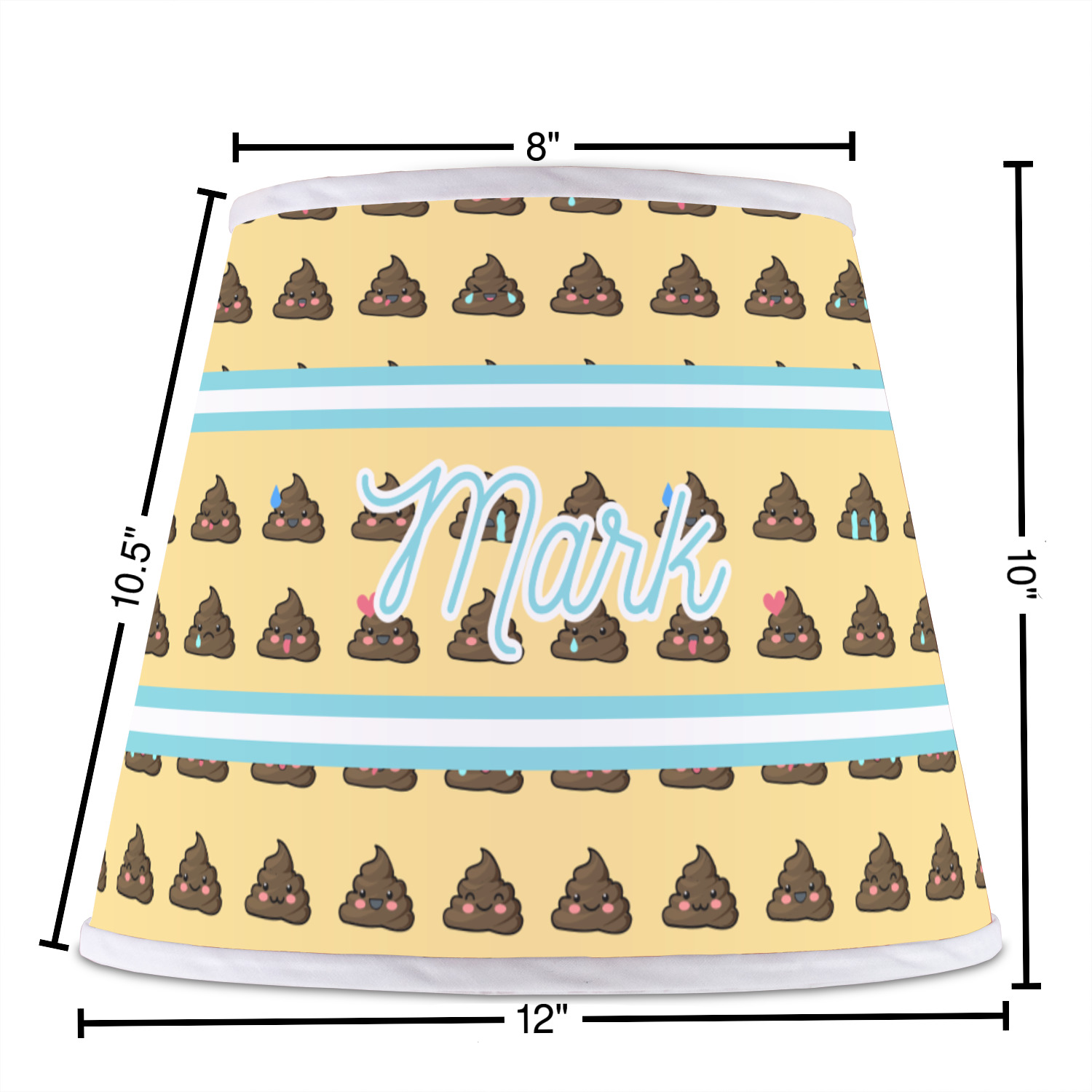 The base of this lampshade is 12 inches in diameter, and the top spans 8 inches in diameter. The total height of the lampshade is 10 inches. The angled nature of this custom lampshade concentrates the light, making it ideal for smaller spaces. This lampshade is made of matte, polyfilm, and displays your customization in its middle. The top and bottom of this colorful lamp shade are lined with a white fabric ribbon (which can be replaced with black inside the design studio) which frames your design and creates a sophisticated finish. As an UNO fitter lampshade, this unique lamp shade will fit a variety of bases.