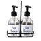 You can purchase these personalized soap dispensers as singulars, or as a set with two bottles. With your purchase of the set, we include a black frame that complements the black color of the pumps and adds to the overall classy look of the piece.