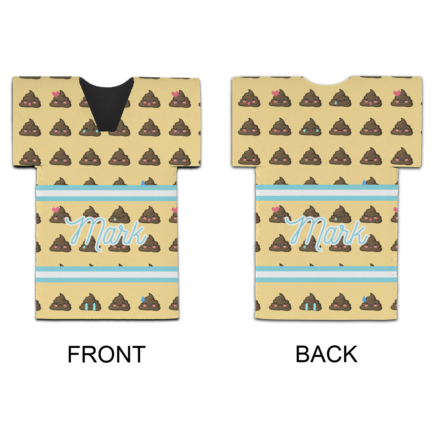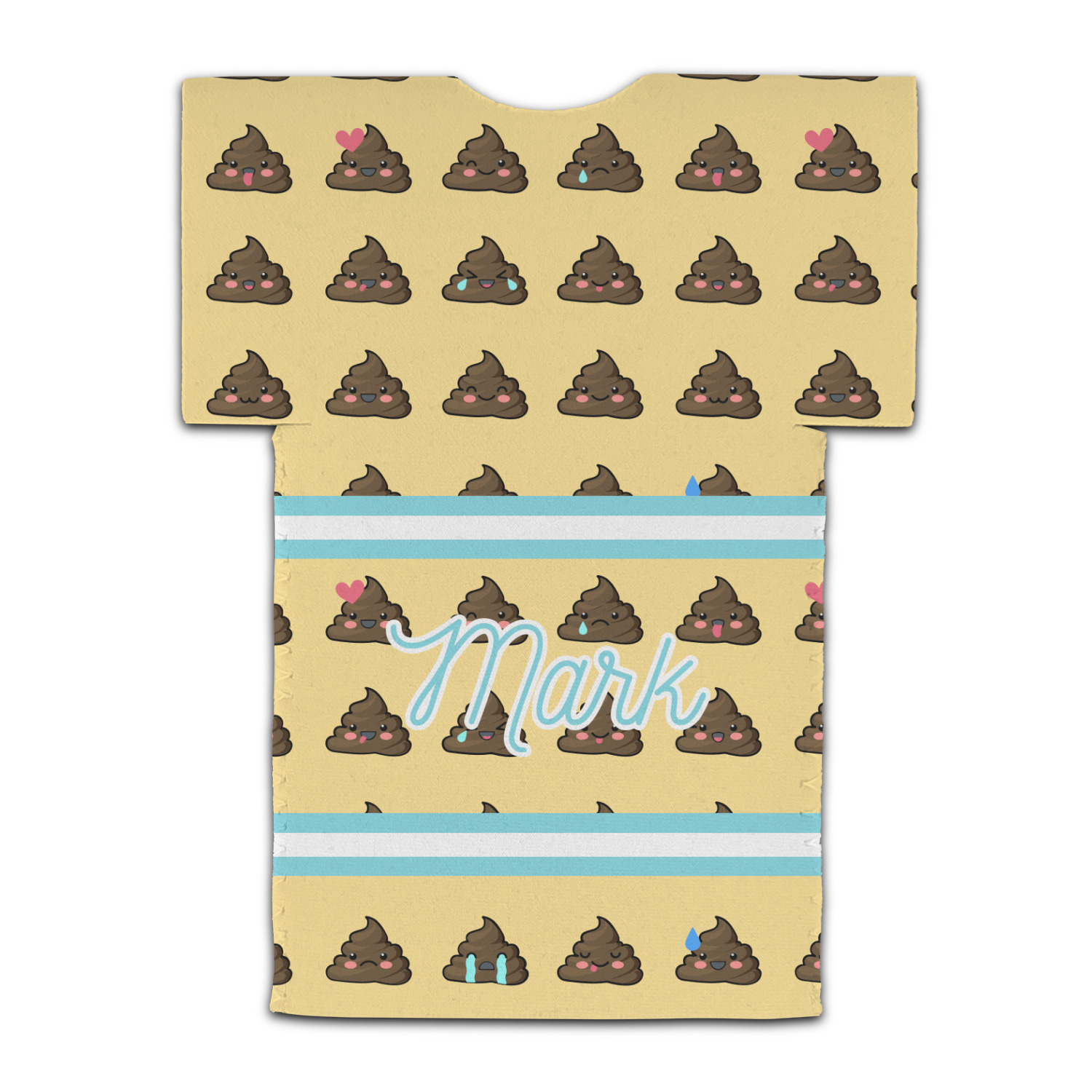 The design is a fun bright yellow with brown poop emojis all over. Each emoji is making a different face! Two light teal / turquoise ribbons are use to frame your personalization in the middle of the design. The coordinating design has a fun speckled yellow background with a large poop emoji right in the middle, saying "Oh, Poo!" underneath.