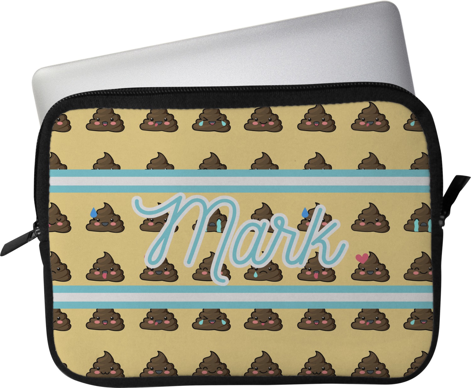 These laptop covers are built from a water-resistant, cushioned neoprene. We display your personalized design on the front of this computer sleeve, while the other sides are simply the black color of the neoprene fabric. A zipper lines the top half of this case, for direct access to your device. For added protection, the interior of this neoprene laptop sleeve is lined with a padded, minky-like material.