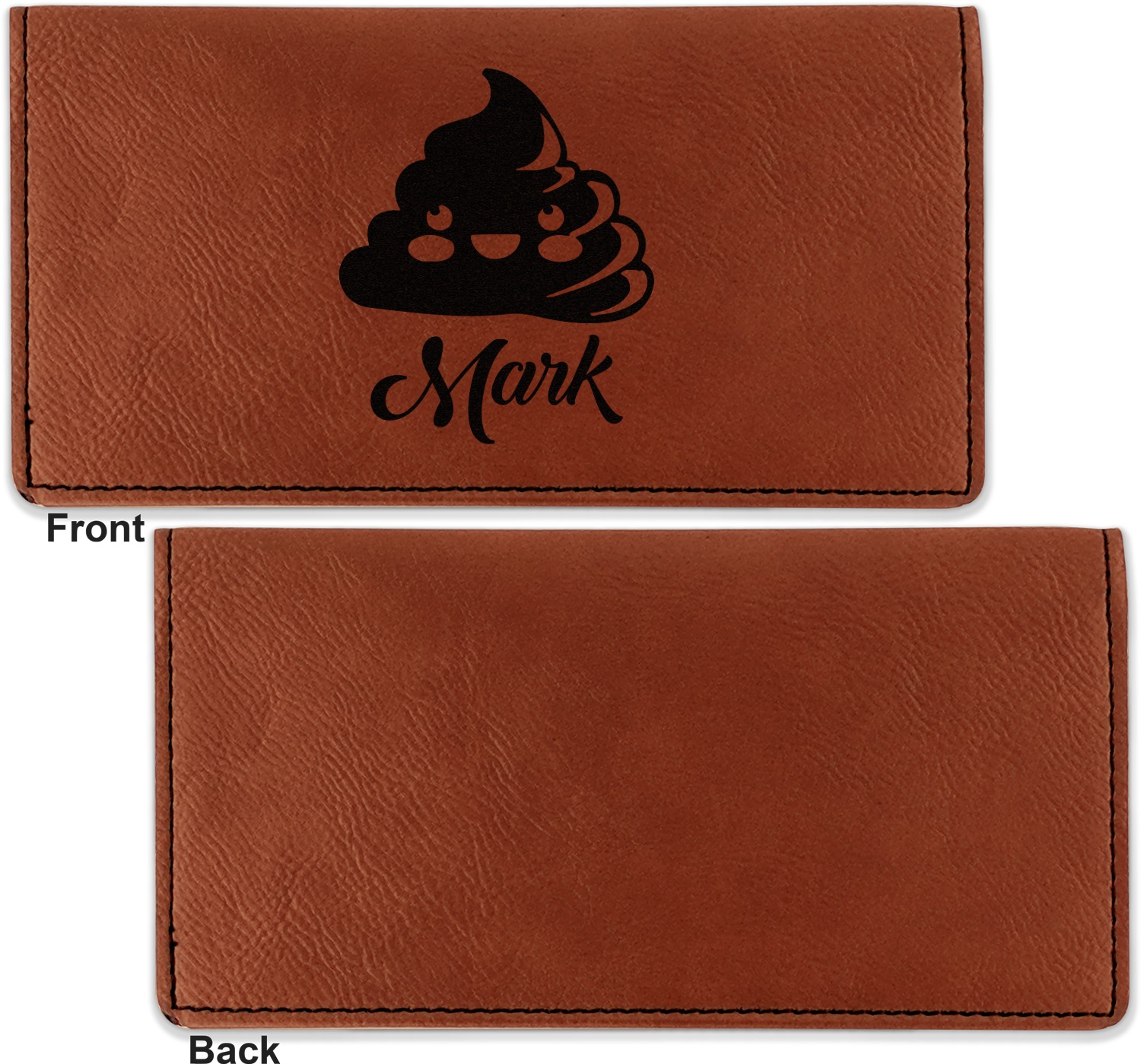 Go into our design center to start personalizing. Your checkbook cover will be laser engraved, making the graphic or text a black color. Choose a fun saying, monogram, or font to go on your checkbook cover. You have the opportunity to do it double or single sided.
