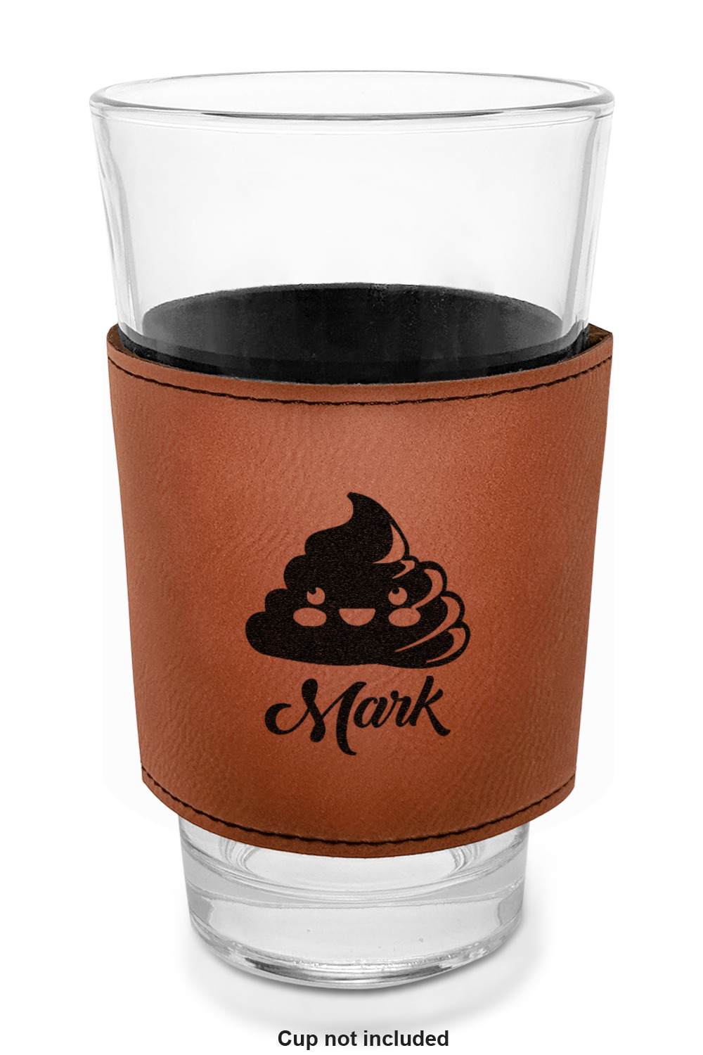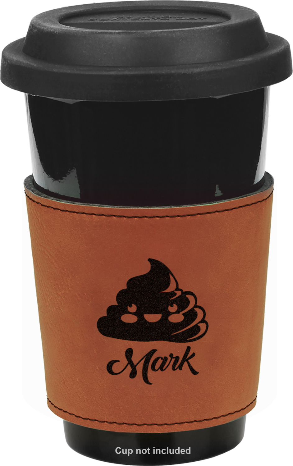 This cup sleeve is made from a suave, cognac-brown leatherette and finished with an intricate, black stitch. The interior of this can sleeve is fabricated from a thin foam material to help insulate your mug's contents. The sleeve is specifically made to suit tapered glasses or mugs, so the top's diameter is 3.5 inches, while the bottom's diameter is 2.75 inches. Your customized design will be laser engraved into the leatherette, leaving behind crisp, black imprint. With these products, we provide you with the option of engraving the front and back, or the front only.