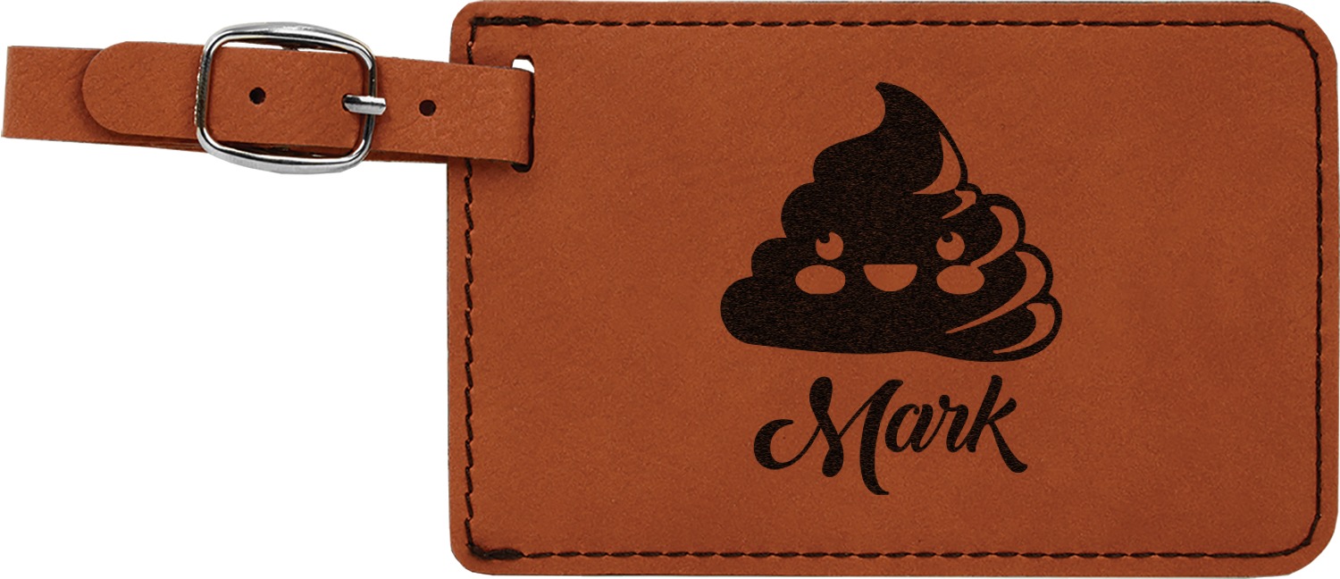 This luggage tag will surely be able to get you started in having all the right tools for traveling. It is made of a beautiful leatherette material that is a nice shade of cognac brown. The front of the tag is where your design goes. The sturdy black stitching gives your design an extra pop and gives the tag extra durability. The back of the tag has a clear vinyl window where you can slip in your address card. The tag comes with a great little buckle strap that you can easily use to clip to your suitcase. The tag itself measures at approximately 5.5"W x 4.25"H.