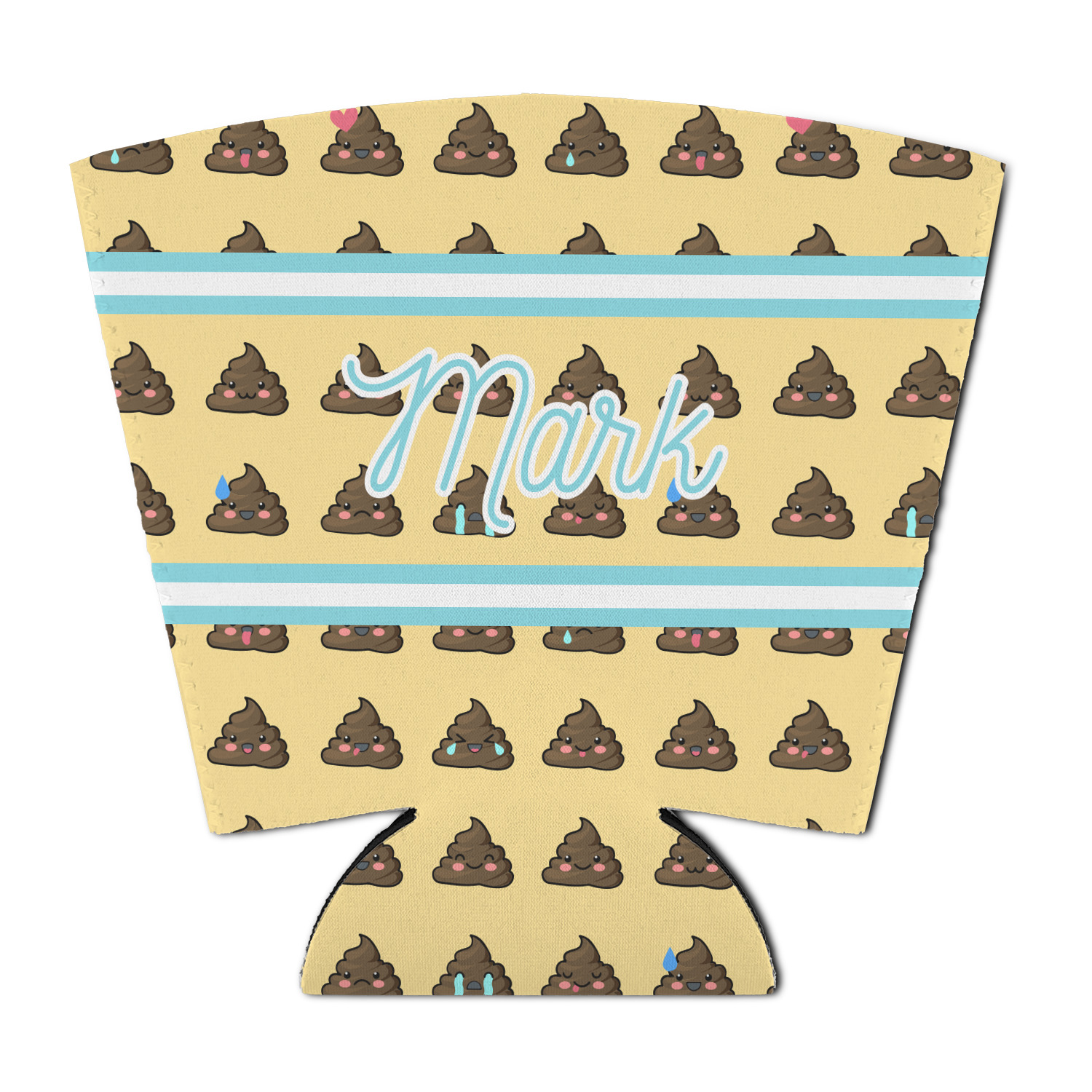 The design is a fun bright yellow with brown poop emojis all over. Each emoji is making a different face! Two light teal / turquoise ribbons are use to frame your personalization in the middle of the design. The coordinating design has a fun speckled yellow background with a large poop emoji right in the middle, saying "Oh, Poo!" underneath.
