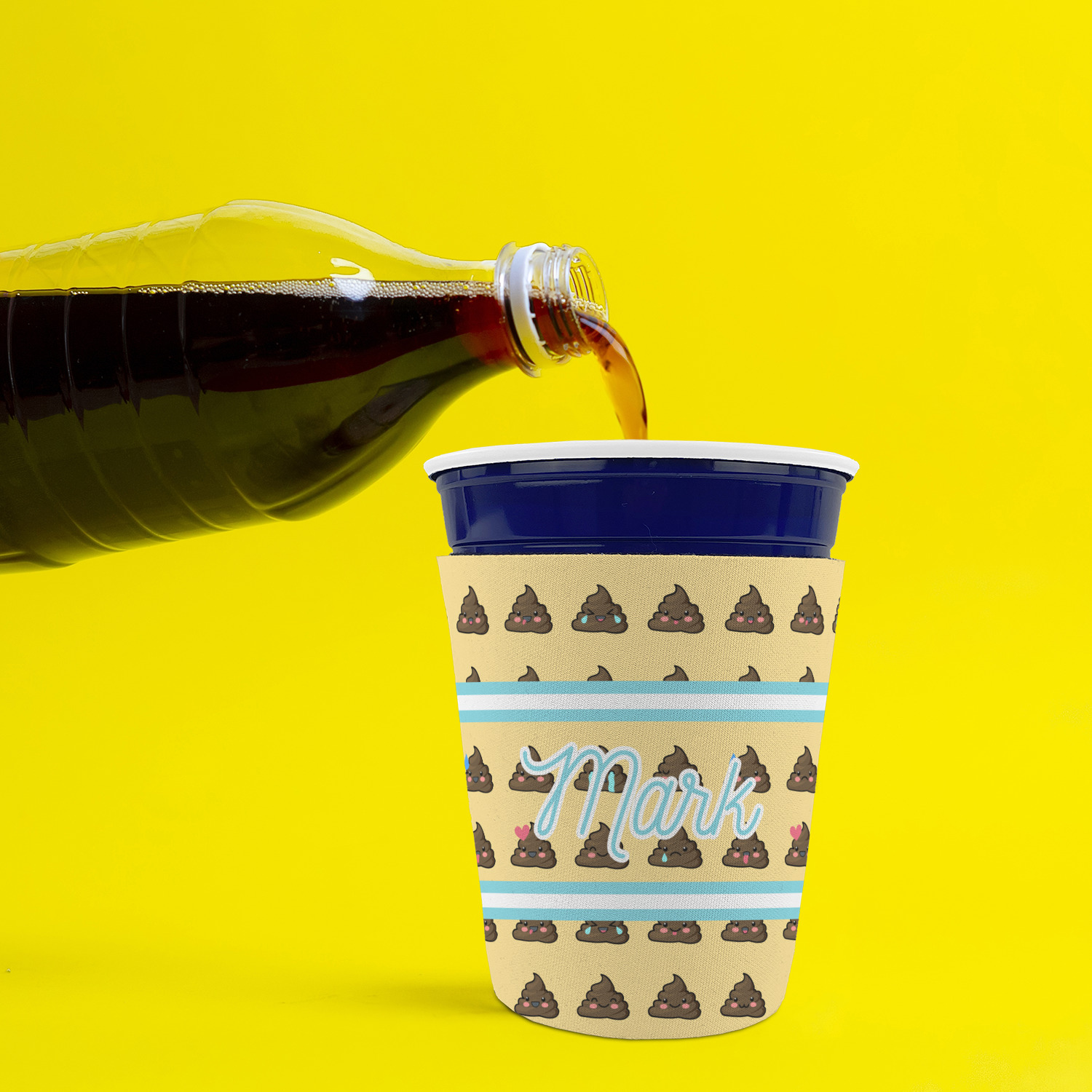 Made from neoprene with a polyester outer fabric and sewn seams, these premium quality party cup sleeves are very durable and will hold up to heavy use. They are available in 2 styles - with a bottom or just a sleeve to go around the outside of the tapered cup. The sleeve covers are about 4" tall and cover about 90% of the classic 16 oz. Solo cup.