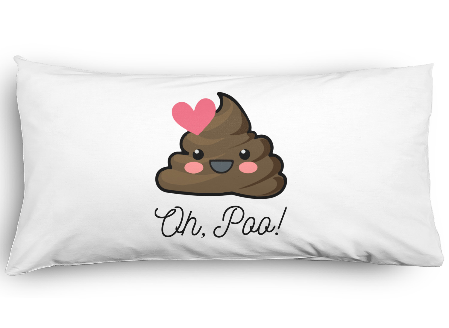 The design is a fun bright yellow with brown poop emojis all over. Each emoji is making a different face! Two light teal / turquoise ribbons are use to frame your personalization in the middle of the design. The coordinating design has a fun speckled yellow background with a large poop emoji right in the middle, saying "Oh, Poo!" underneath.