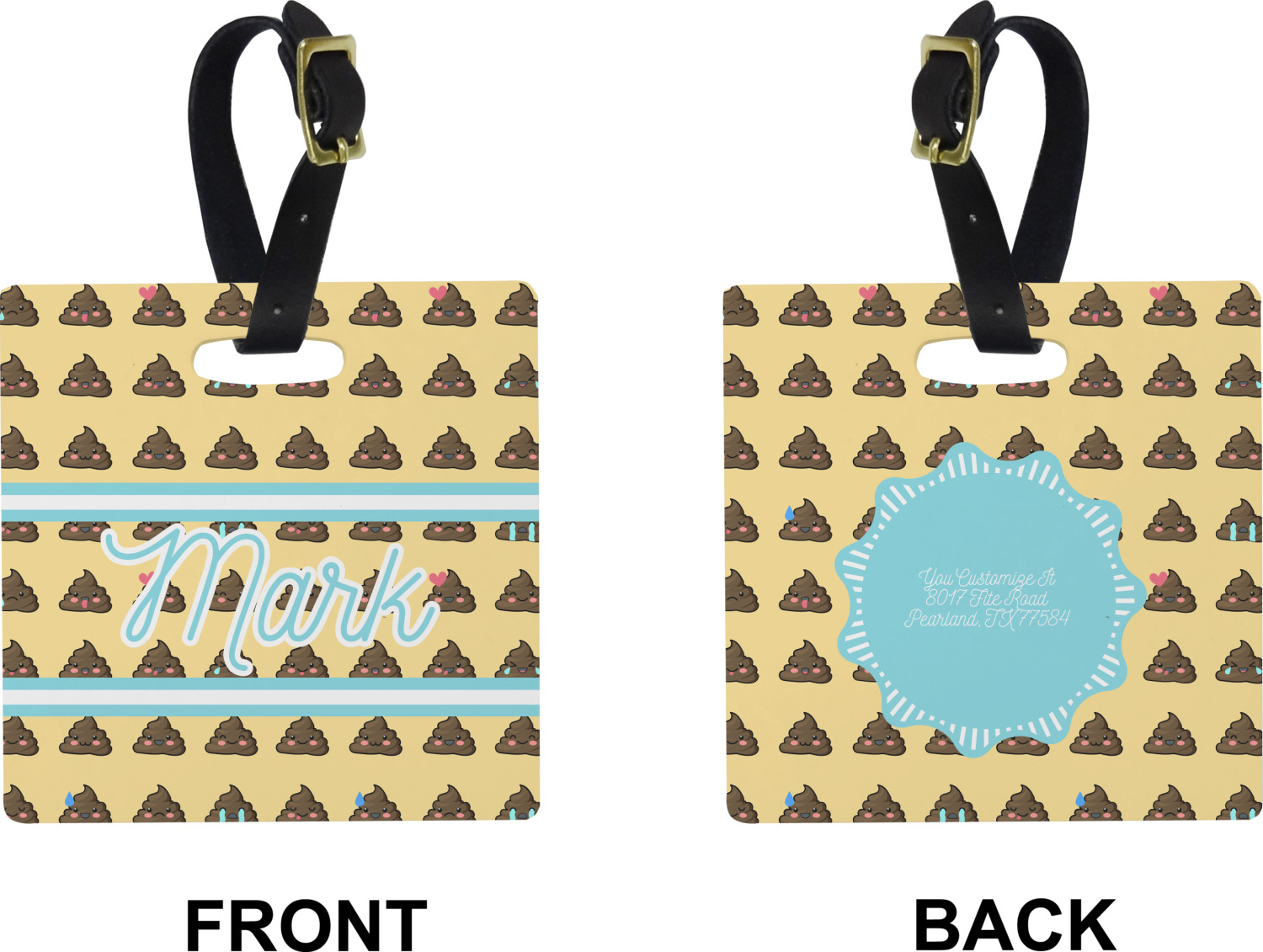 These cute luggage tags are made of a fiber-reinforced, UV-resistant plastic, making them waterproof and durable enough for both everyday use and the rugged adventures of any traveler! A leather strap with holes and a buckle is included with your purchase and can be used to attach your custom luggage tag to any suitcase, backpack, or duffel bag. You can design these travel tags as you wish; your customization will be displayed across the front, while the back will show as little or as much personal information as you want.