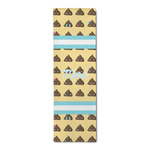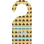 The design is a fun bright yellow with brown poop emojis all over. Each emoji is making a different face! Two light teal / turquoise ribbons are use to frame your personalization in the middle of the design. The coordinating design has a fun speckled yellow background with a large poop emoji right in the middle, saying "Oh, Poo!" underneath.