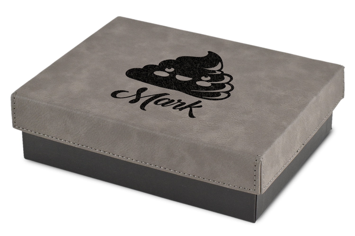 These gift boxes are available in 3 different sizes to accommodate various sized gifts. Available in gray as a neutral color for any occasion as well as to showcase your design boldly. Engraved with a laser this high quality paper board and faux leather gift box is unique and makes any gift stand out.
