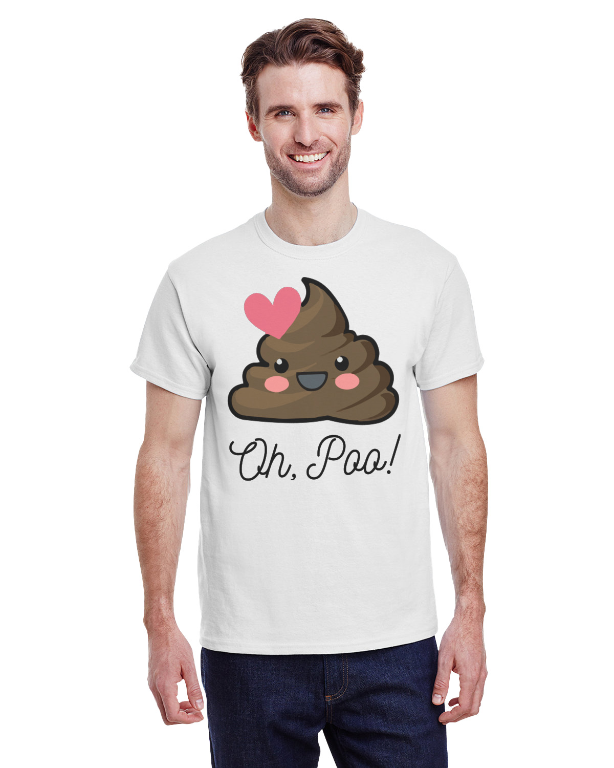 The design is a fun bright yellow with brown poop emojis all over. Each emoji is making a different face! Two light teal / turquoise ribbons are use to frame your personalization in the middle of the design. The coordinating design has a fun speckled yellow background with a large poop emoji right in the middle, saying "Oh, Poo!" underneath.