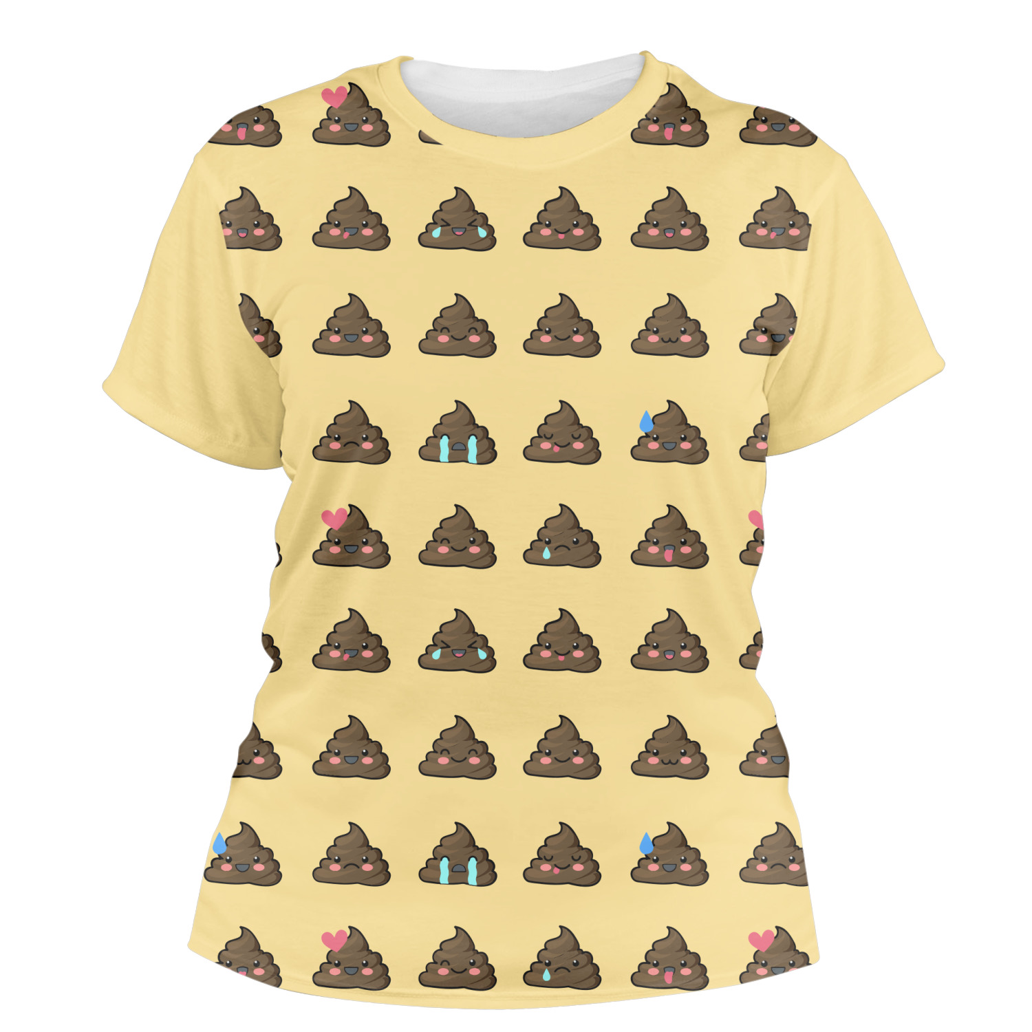 The design is a fun bright yellow with brown poop emojis all over. Each emoji is making a different face! Two light teal / turquoise ribbons are use to frame your personalization in the middle of the design. The coordinating design has a fun speckled yellow background with a large poop emoji right in the middle, saying "Oh, Poo!" underneath.