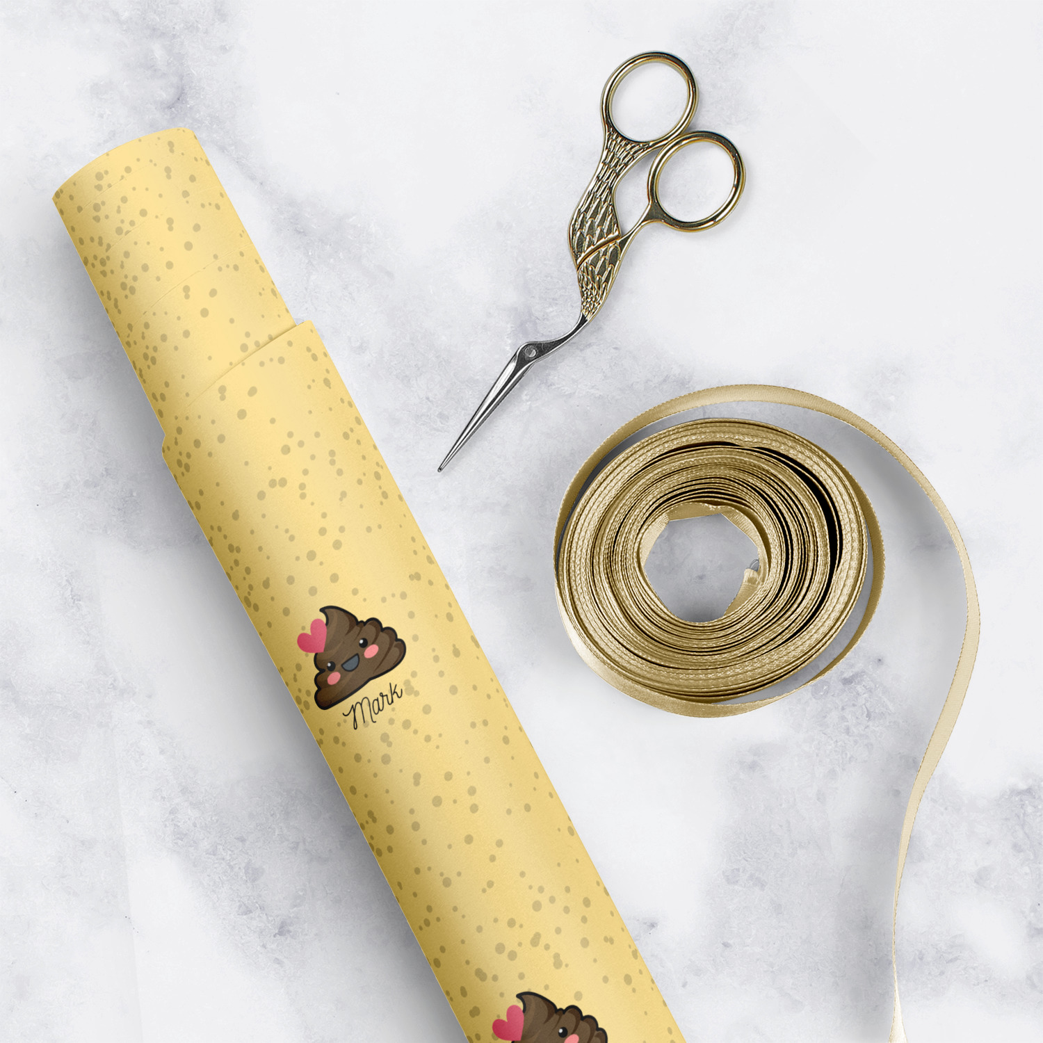 Our rolls are printed on premium paper in in a satin or matte finish. The wrapping paper is scratch & water resistant; it is flexible and will resist cracking when folded or creased. We use 100% water based inks for the wrapping paper rolls.