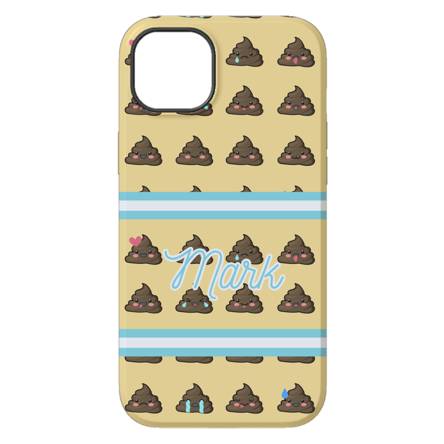 The design is a fun bright yellow with brown poop emojis all over. Each emoji is making a different face! Two light teal / turquoise ribbons are use to frame your personalization in the middle of the design. The coordinating design has a fun speckled yellow background with a large poop emoji right in the middle, saying "Oh, Poo!" underneath.