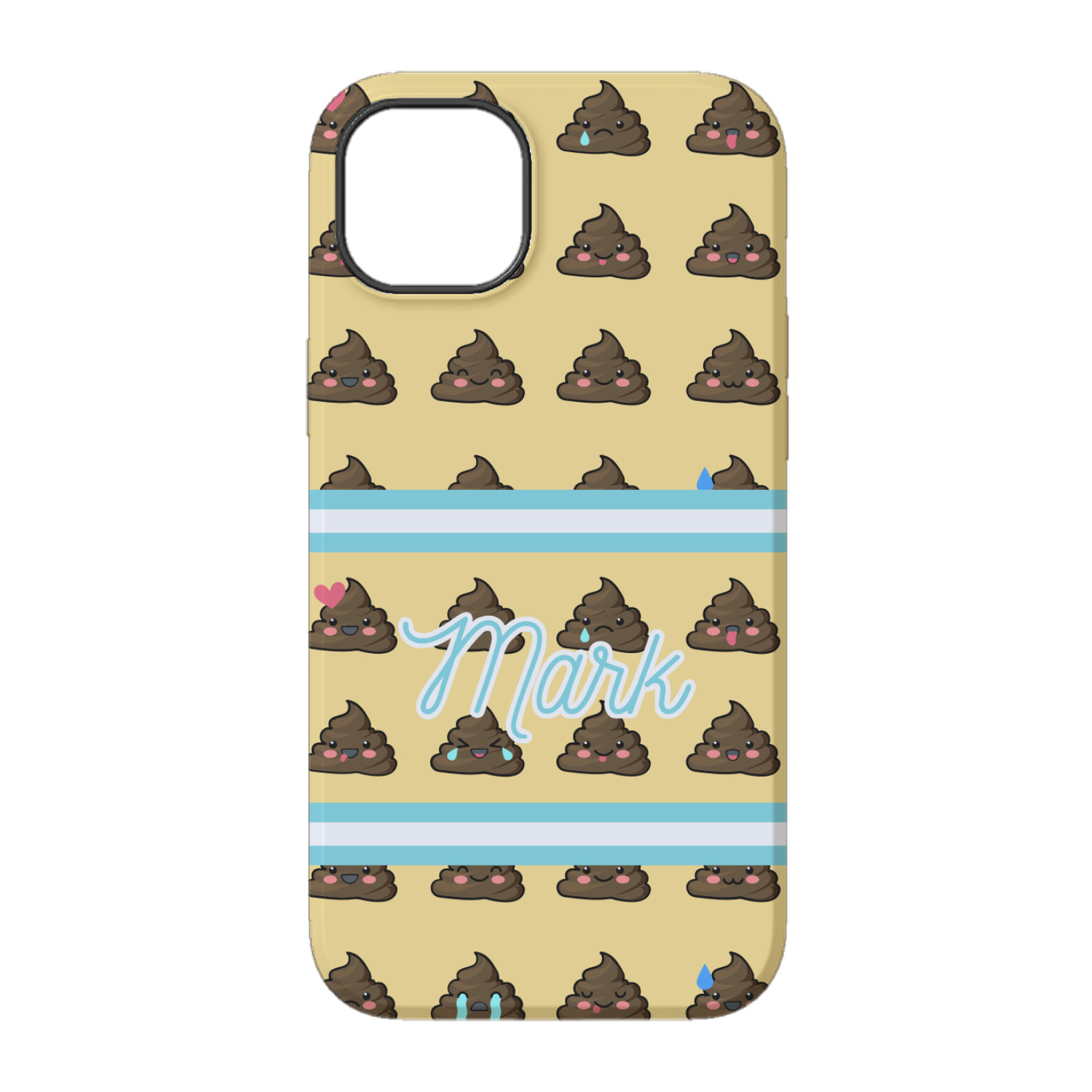 The design is a fun bright yellow with brown poop emojis all over. Each emoji is making a different face! Two light teal / turquoise ribbons are use to frame your personalization in the middle of the design. The coordinating design has a fun speckled yellow background with a large poop emoji right in the middle, saying "Oh, Poo!" underneath.