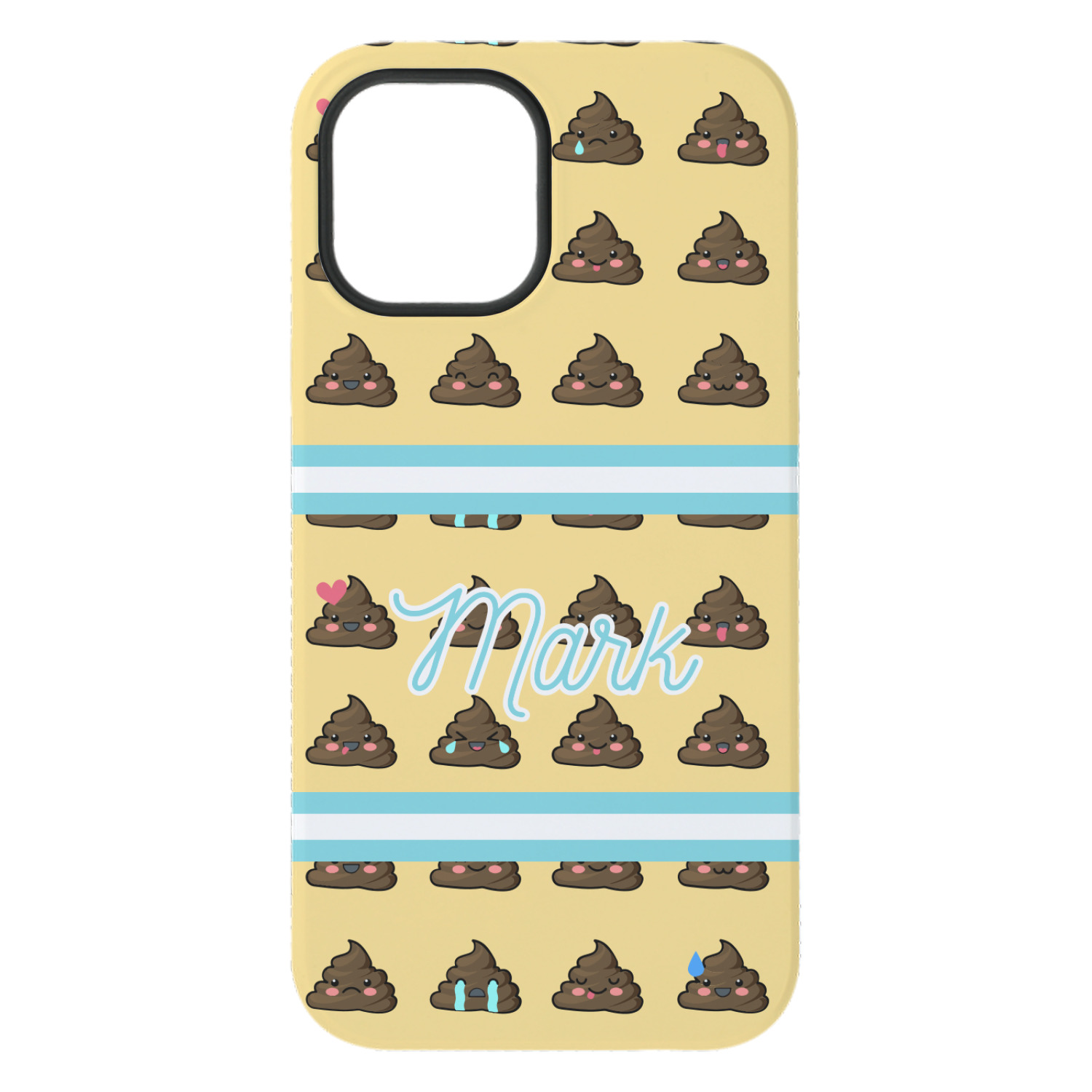 The design is a fun bright yellow with brown poop emojis all over. Each emoji is making a different face! Two light teal / turquoise ribbons are use to frame your personalization in the middle of the design. The coordinating design has a fun speckled yellow background with a large poop emoji right in the middle, saying "Oh, Poo!" underneath.