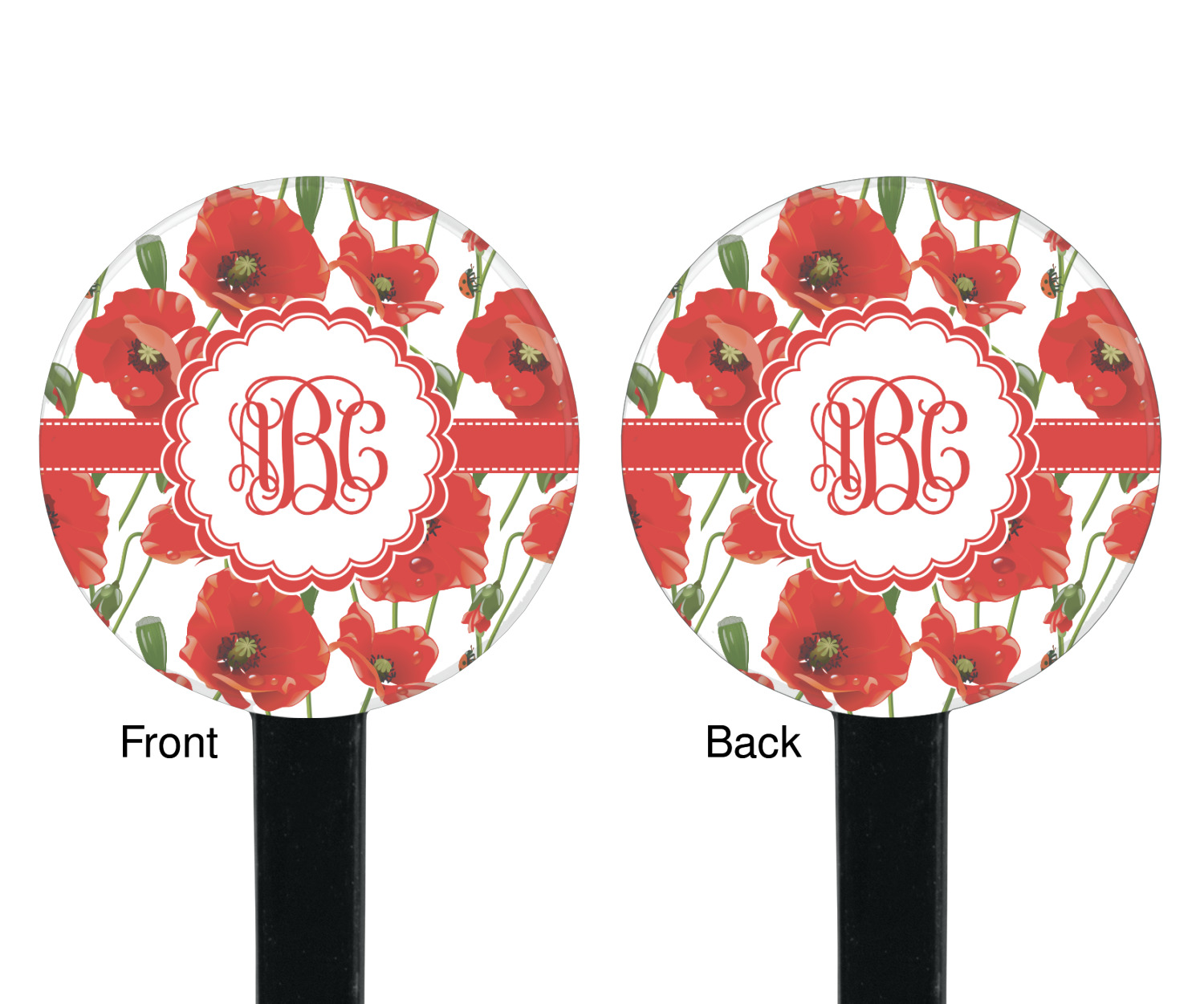 A scalloped label rests in the center of the poppy field, the perfect place for the personalization of your choice.