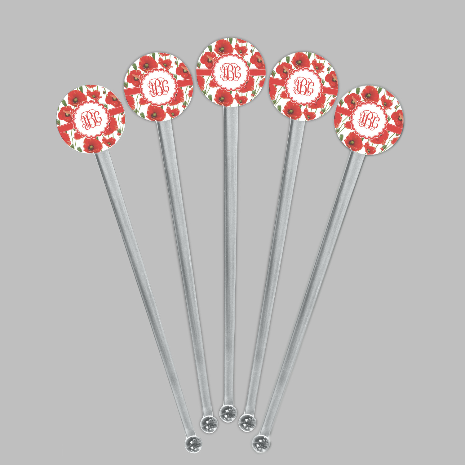 A scalloped label rests in the center of the poppy field, the perfect place for the personalization of your choice.
