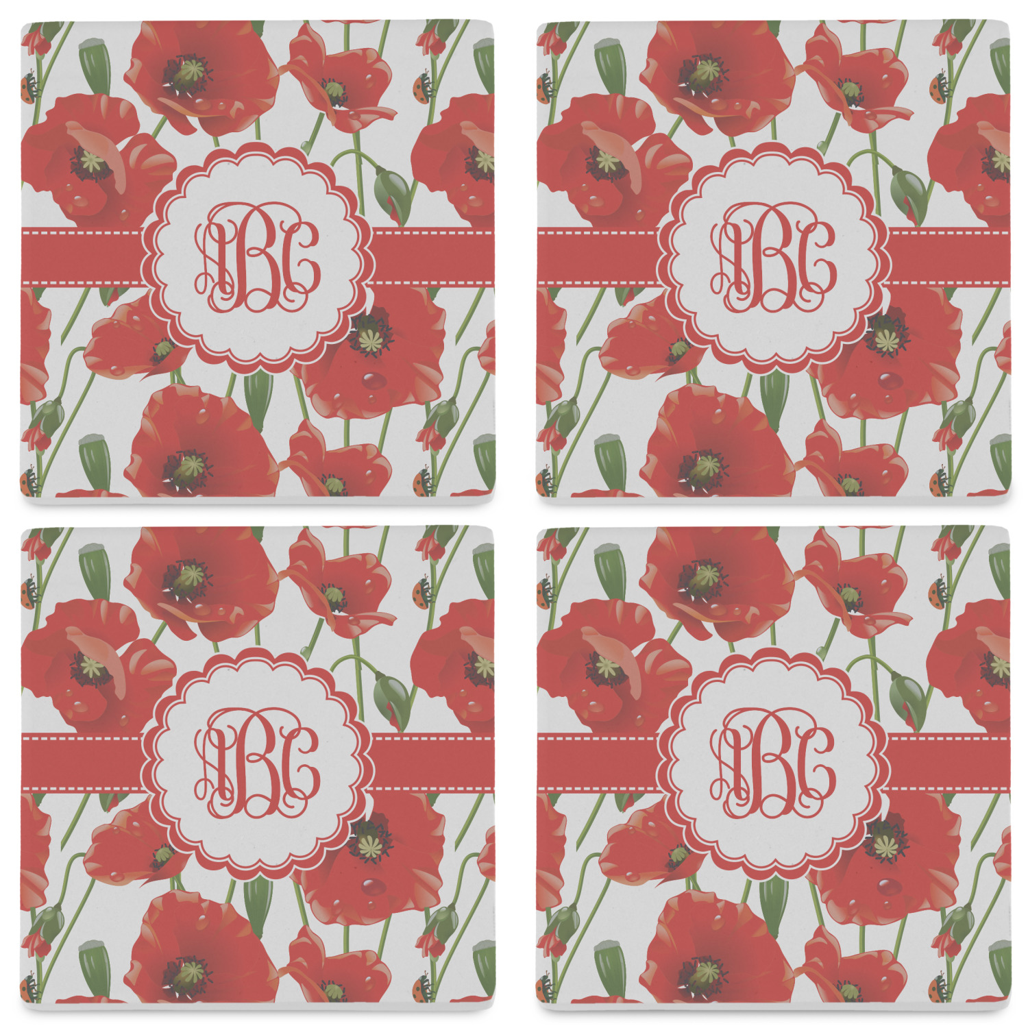 A scalloped label rests in the center of the poppy field, the perfect place for the personalization of your choice.