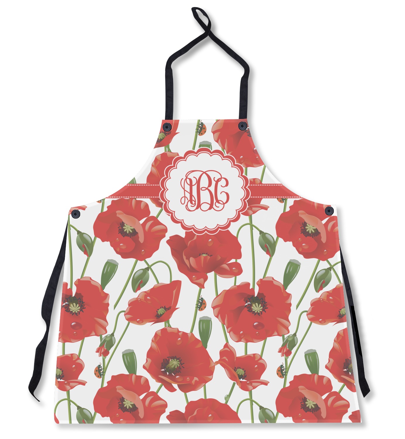 A scalloped label rests in the center of the poppy field, the perfect place for the personalization of your choice.
