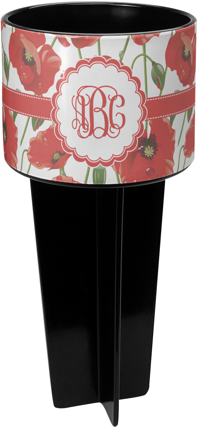 This cup holder has a large stake at its bottom that anchors it to the sand or ground below, while the cup holder rests above the stake. The entire drink holder is made of durable plastic and displays your customization around the cup holder portion. We sell these personalized beach spikers in two different colors: black and white.