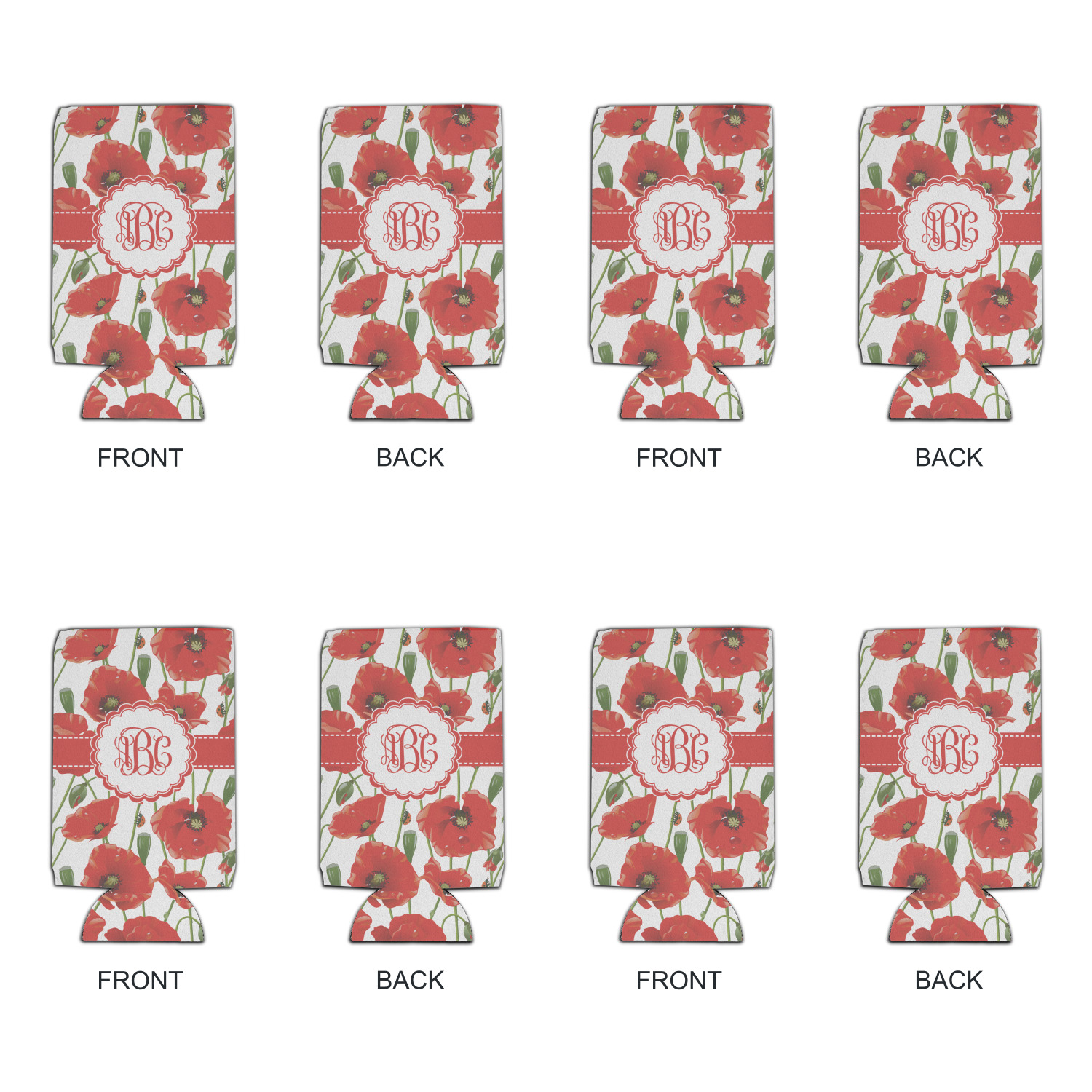 A scalloped label rests in the center of the poppy field, the perfect place for the personalization of your choice.