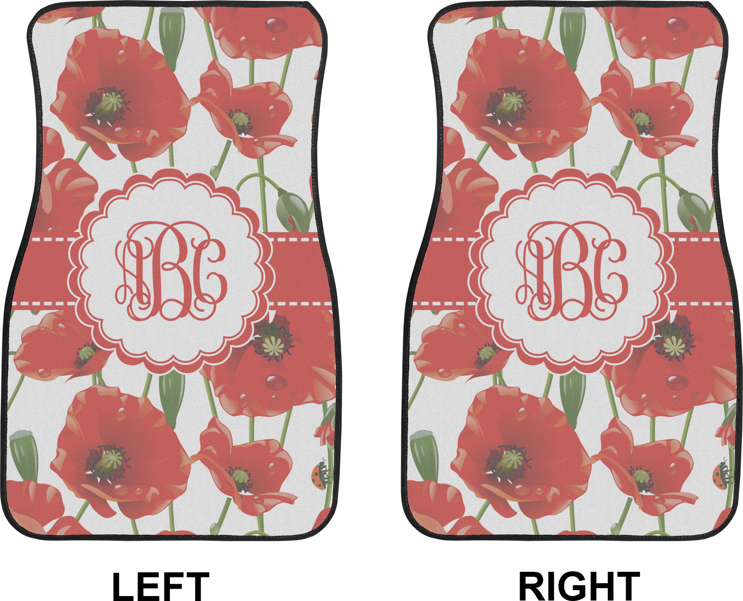 We craft our auto floor mats mats from polyester, apply a black finish to the edges, and lined at the bottom to prevent slippage. These mats protect your floors from grass, mud, and any accidental spills. We display your personalized design on the front face of each mat. The sizes of these car floor liners are standardized to provide a versatile fit for all vehicles. The front rows car mats measure at 17 by 26.5 inches, while the back rows measure at 17 by 13 inches. We sell three packages of car floor mats. You can purchase a pair of front row car mats, a pair of back row car mats, or a set of front row and back row car mats. To make an informed purchase, we recommend measuring the surface area of your car floors.