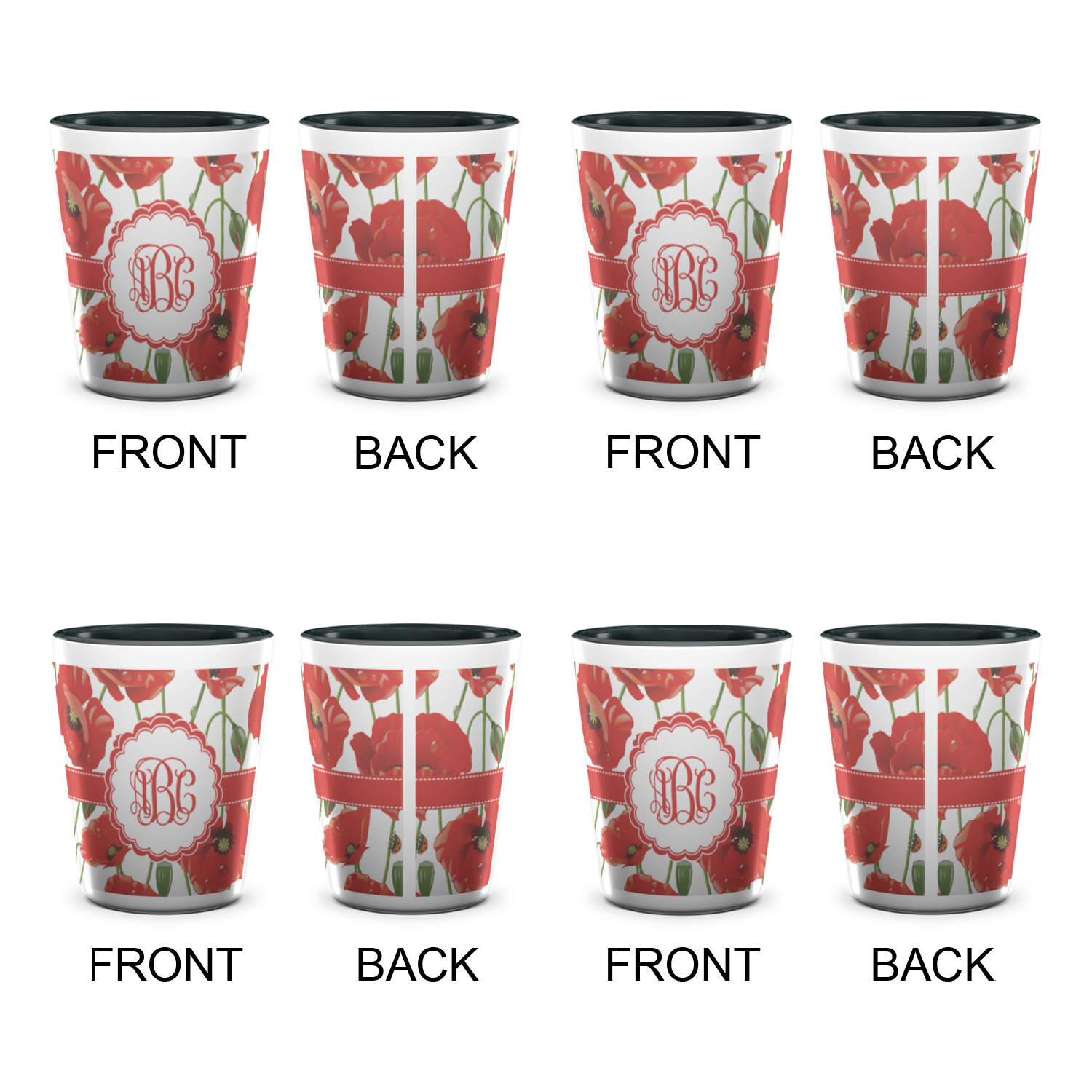 A scalloped label rests in the center of the poppy field, the perfect place for the personalization of your choice.