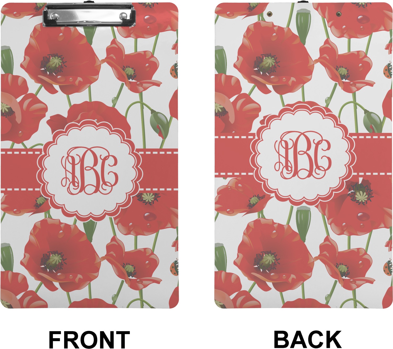 These custom clipboards are made from a strong hardboard and are coated with a glossy finish that accentuates the colors of your design. Alongside a retractable hook at its top, these decorative clipboards also feature sturdy clips to secure several sheets of paper. We sell these clipboards in two separate sizes. Our letter size measures at 12.5" L x 9" W, while our legal clipboard is approximately 15.5" L x 9" W. On both models, your personalization is printed on both sides of this clipboard and can be customized individually.