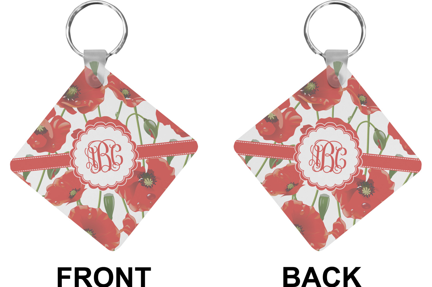 Our personalized keychains attach to the included metal, split key ring with a plastic, removable snap. Since a metal ring is included with your purchase, you have the liberty to keep your keys together on the ring, with or without your unique keychain. We offer this keychain in three different shapes: circle, heart, or diamond. We print your personalized design(s) on both sides of the key chain, and the surface has a glossy, reflective finish that only emphasizes your design. Each keychain is approximately 2.25 by 2.25 inches.