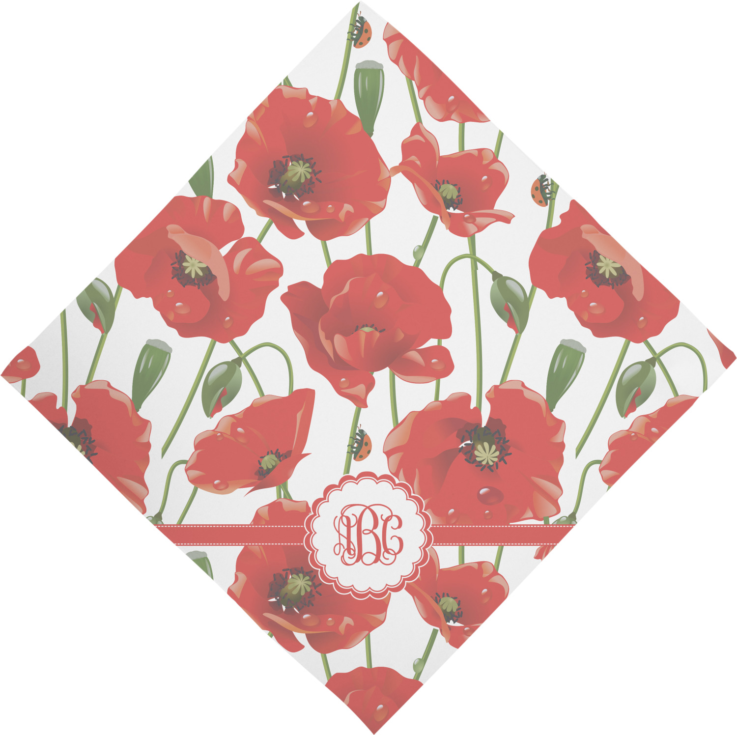 A scalloped label rests in the center of the poppy field, the perfect place for the personalization of your choice.
