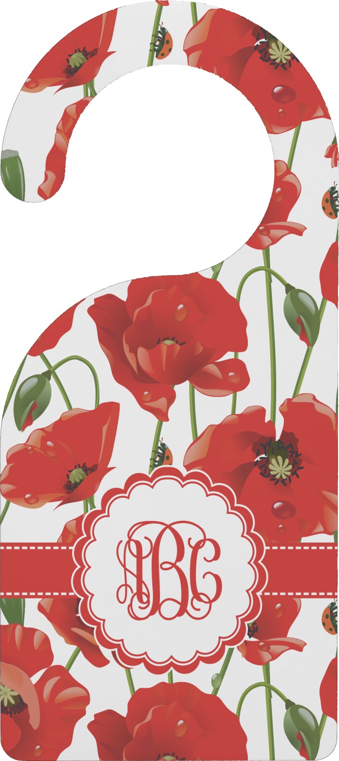 A scalloped label rests in the center of the poppy field, the perfect place for the personalization of your choice.