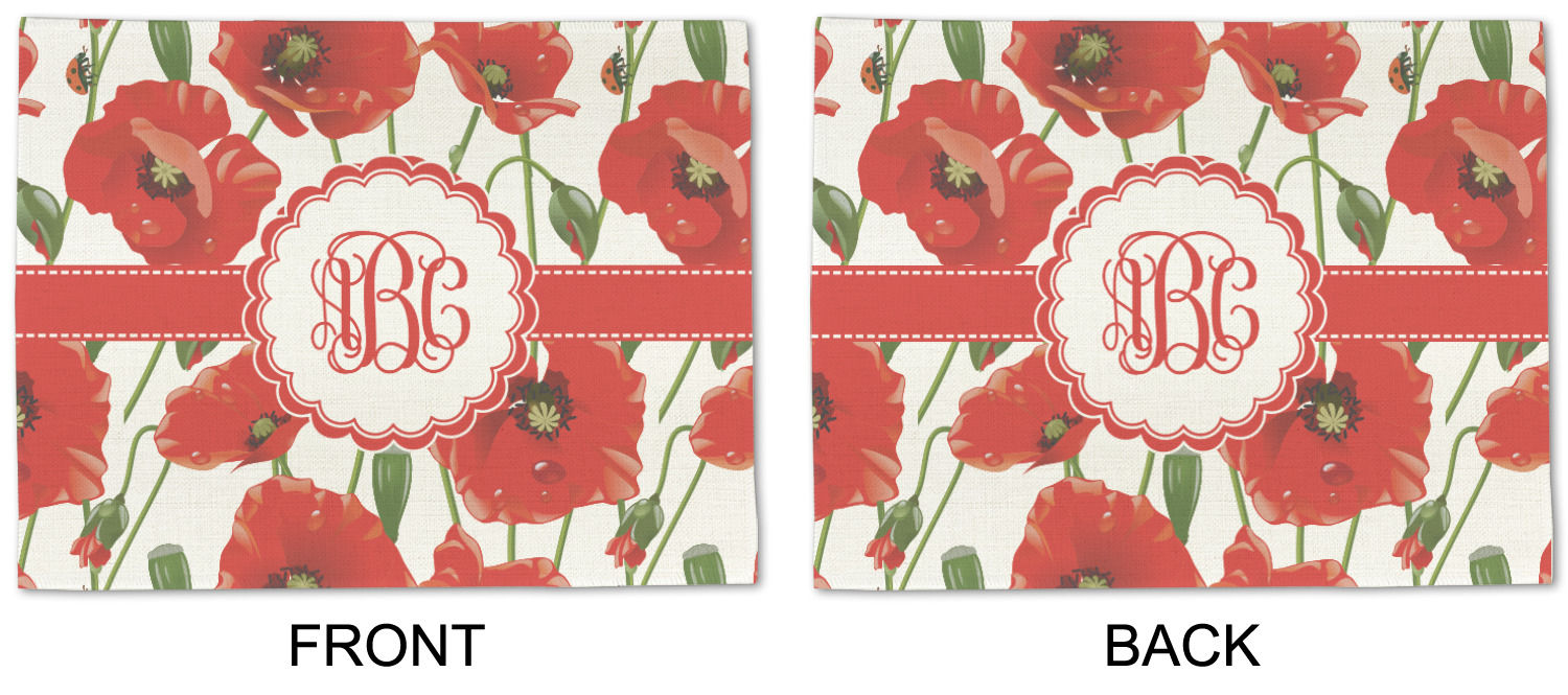 A scalloped label rests in the center of the poppy field, the perfect place for the personalization of your choice.