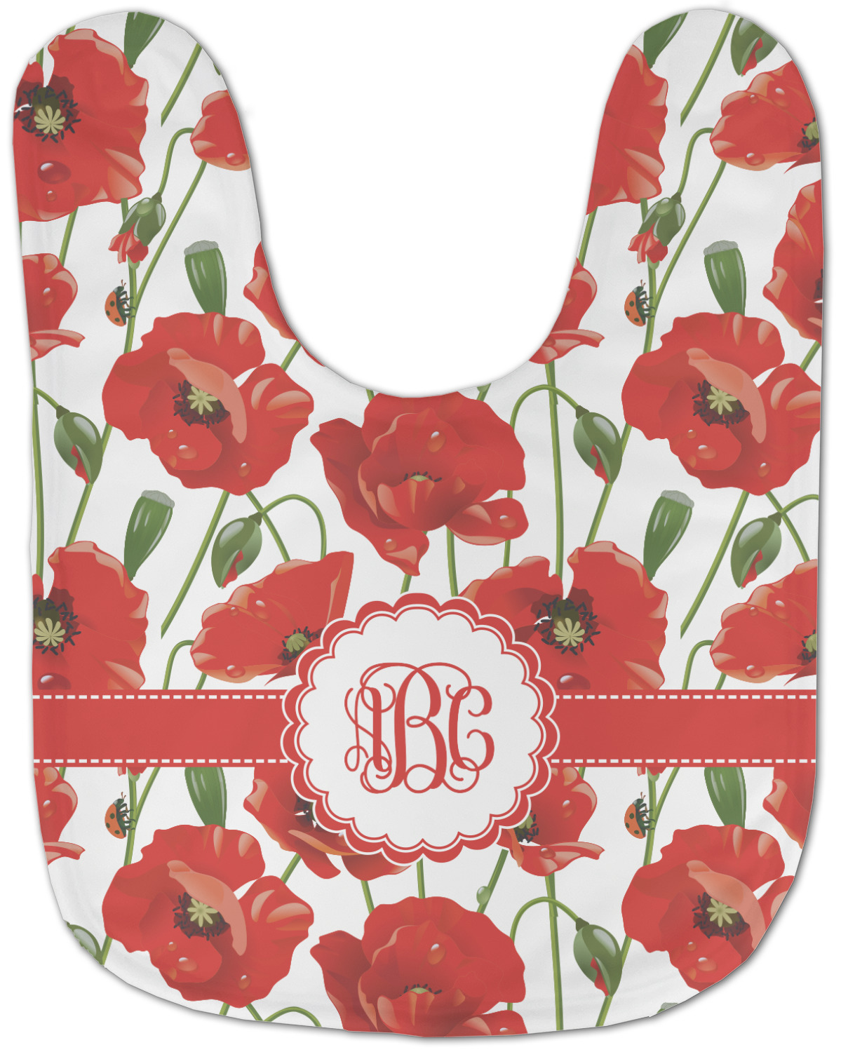 A scalloped label rests in the center of the poppy field, the perfect place for the personalization of your choice.