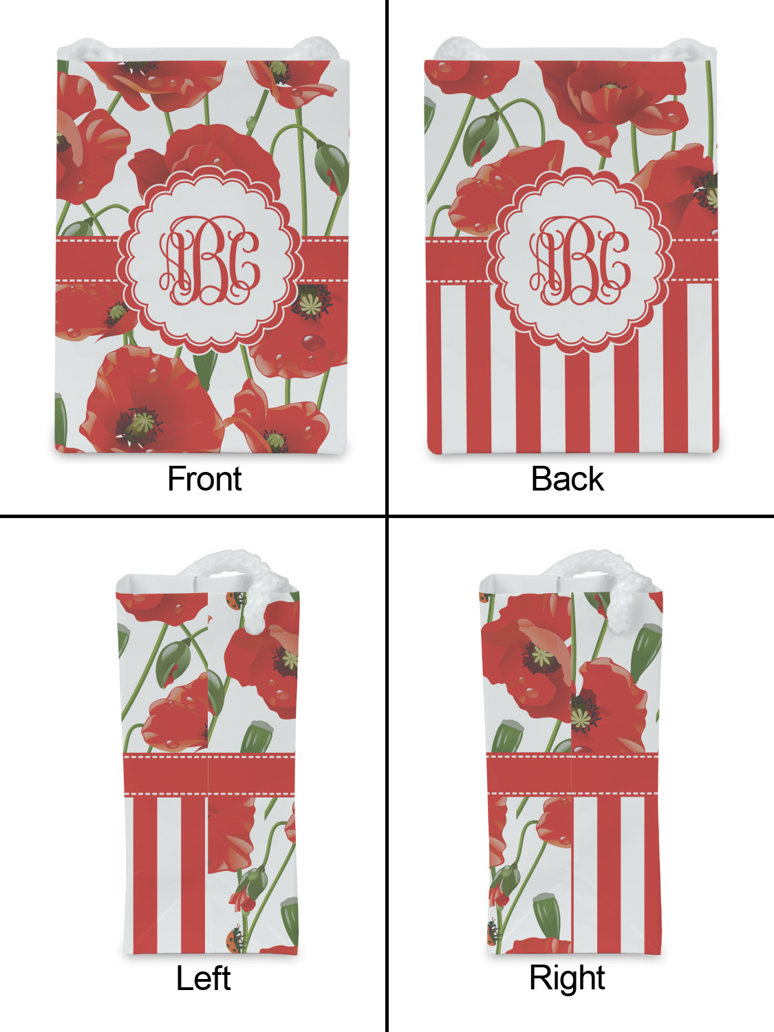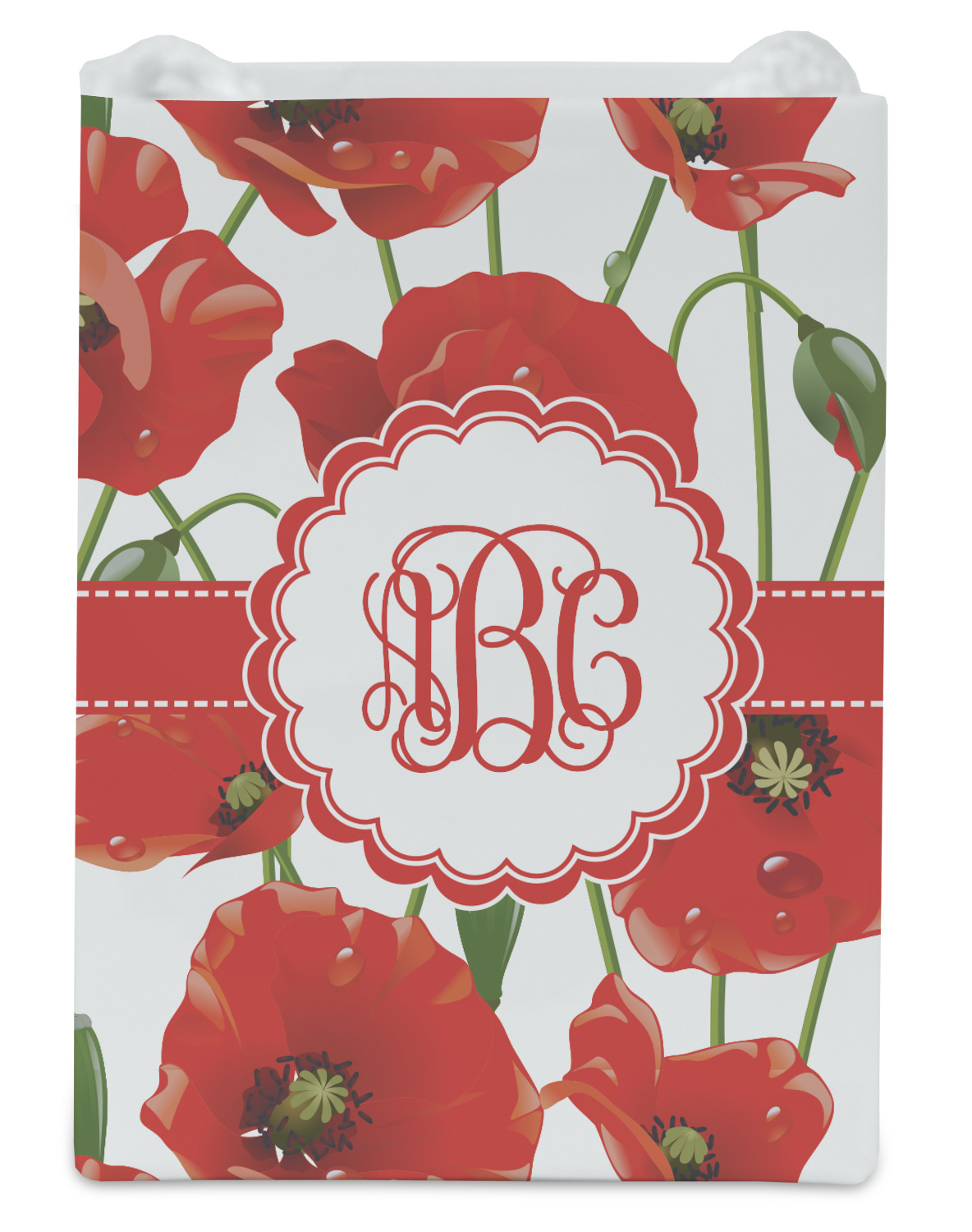A scalloped label rests in the center of the poppy field, the perfect place for the personalization of your choice.