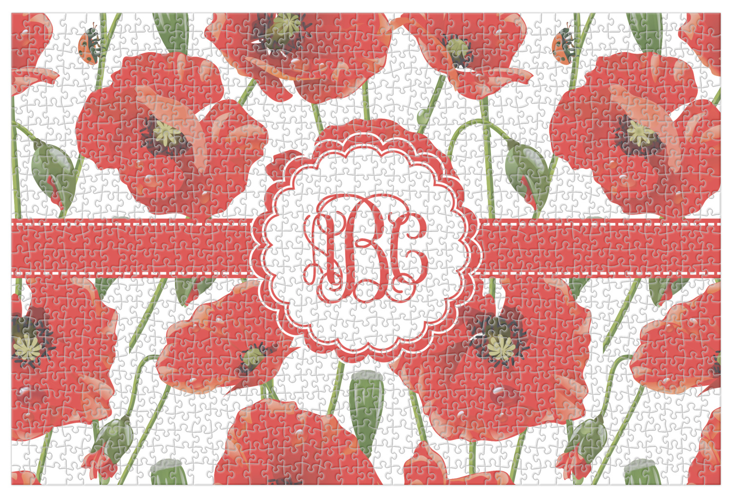 A scalloped label rests in the center of the poppy field, the perfect place for the personalization of your choice.
