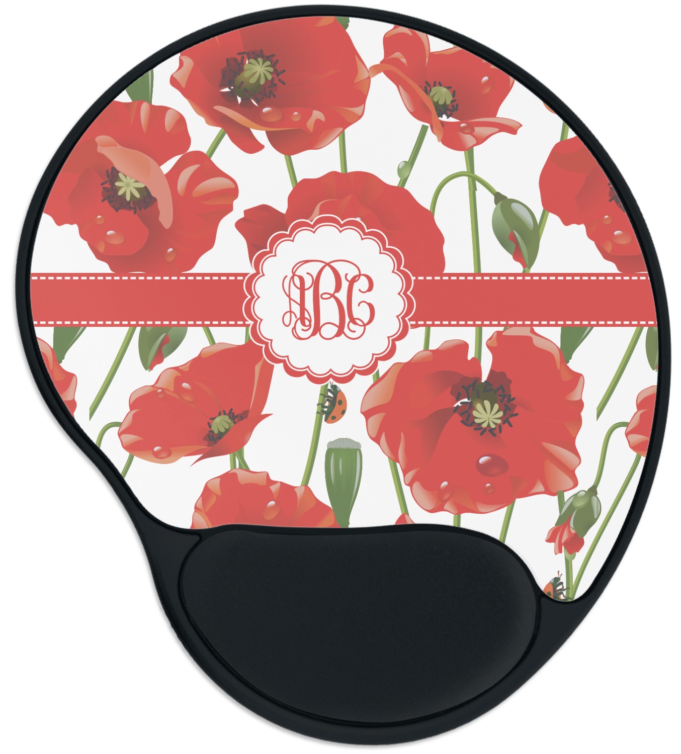 The top of these personalized mouse pads are made from a polyester, while the underside is plastic. The back of these mouse mats include rubber feet to prevent any slippage while in use. A padded wrist support, made from plush memory foam, occupies the bottom section of these computer mouse pads. Your customized design is printed onto the face of this mat, with the remaining sides and support piece colored in black. The mat itself is rounded and measures at 10.25" x 9.13".