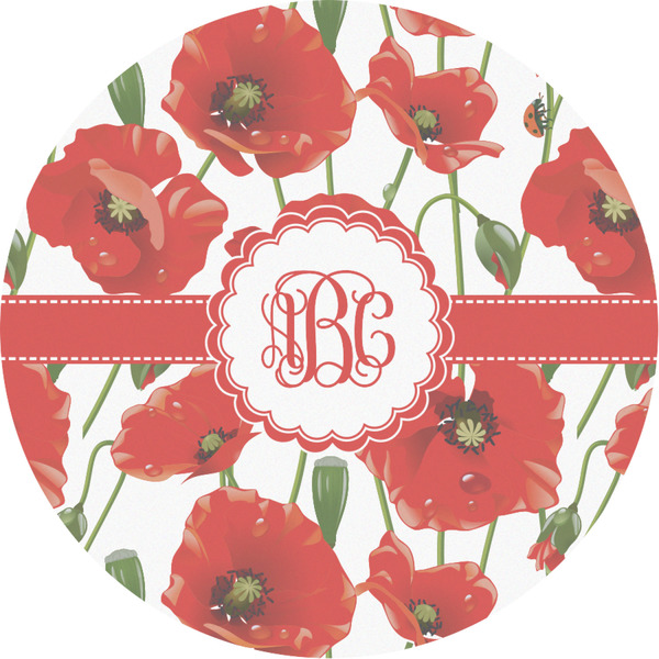 A scalloped label rests in the center of the poppy field, the perfect place for the personalization of your choice.