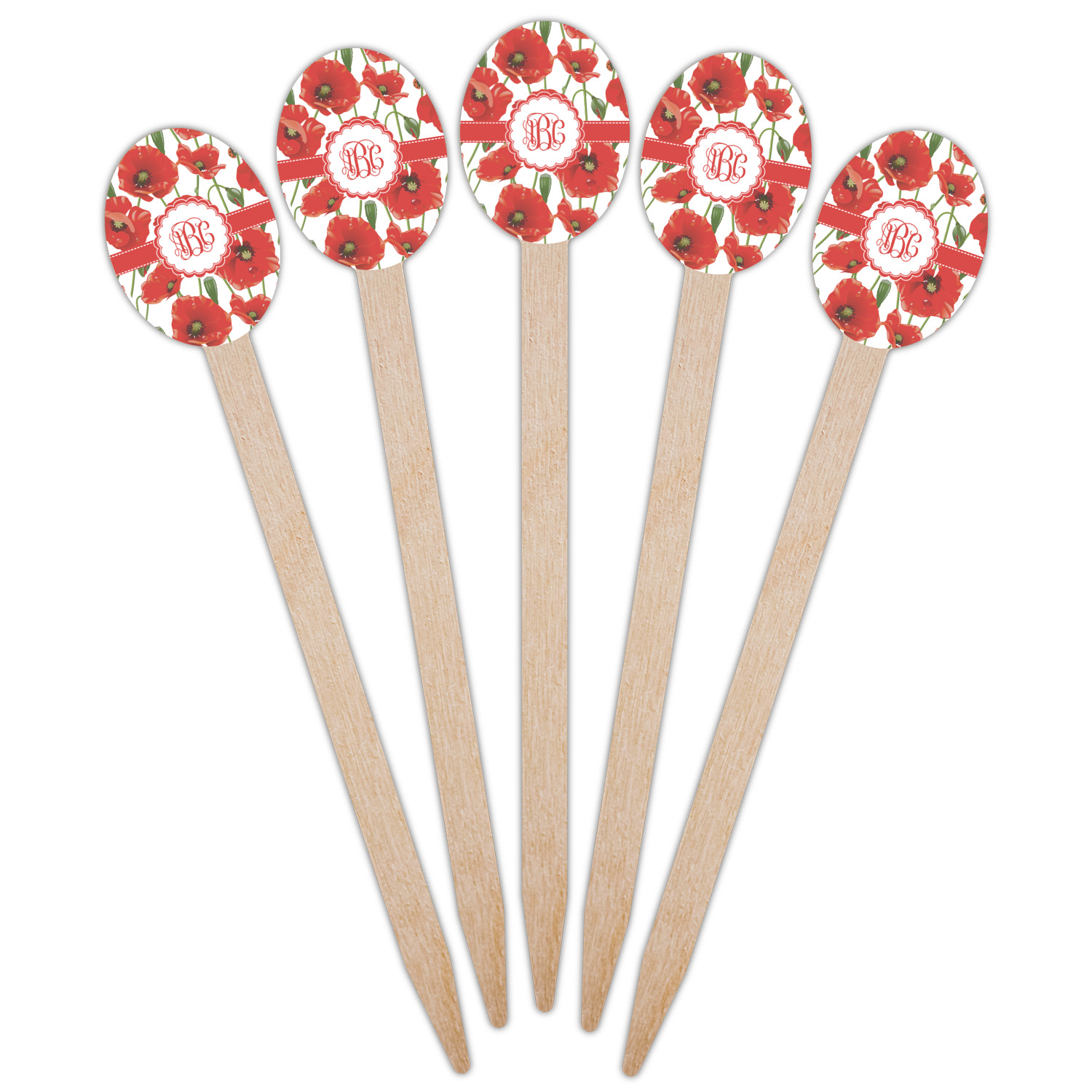 A scalloped label rests in the center of the poppy field, the perfect place for the personalization of your choice.